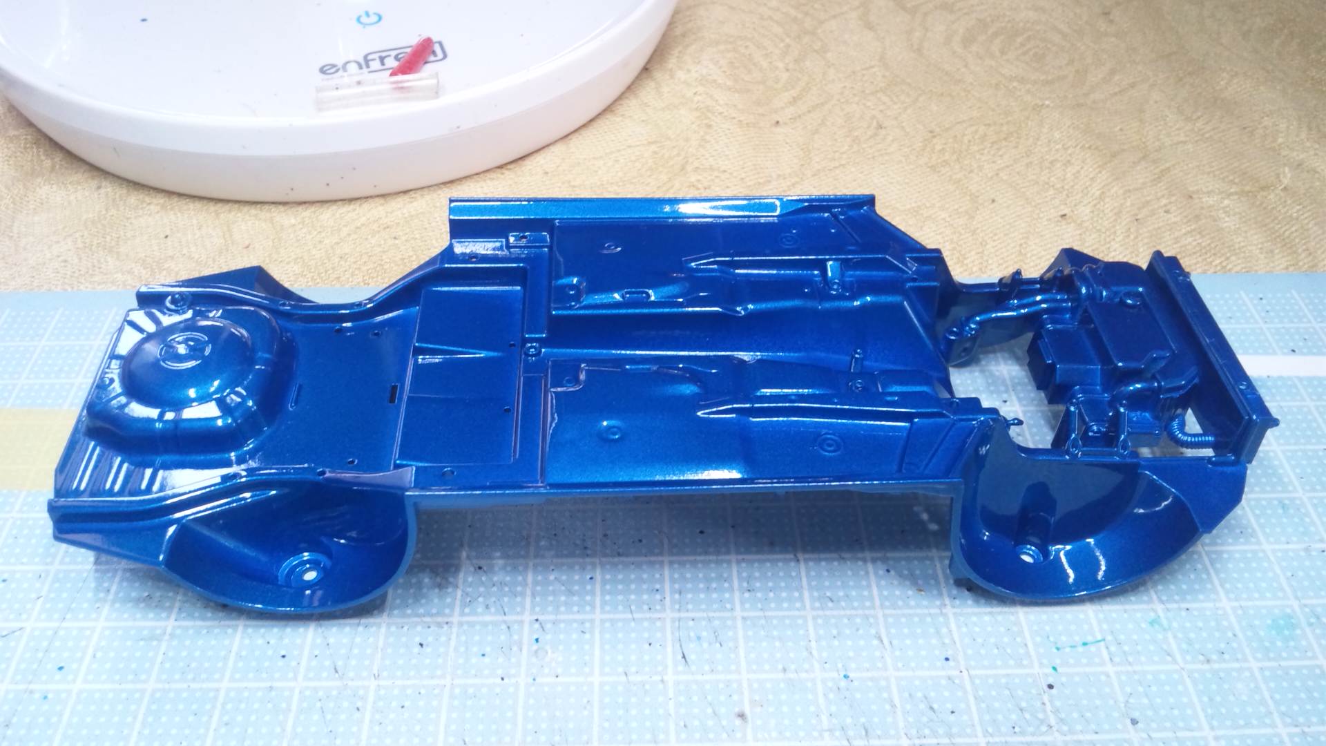 綺麗な色を塗るのは数か月ぶりです。乗りはそこそこですが、焦っちゃだめですねー……エンジン下部はマスキングしておこうと思っていたのに、塗っちゃいました。ボケてます……