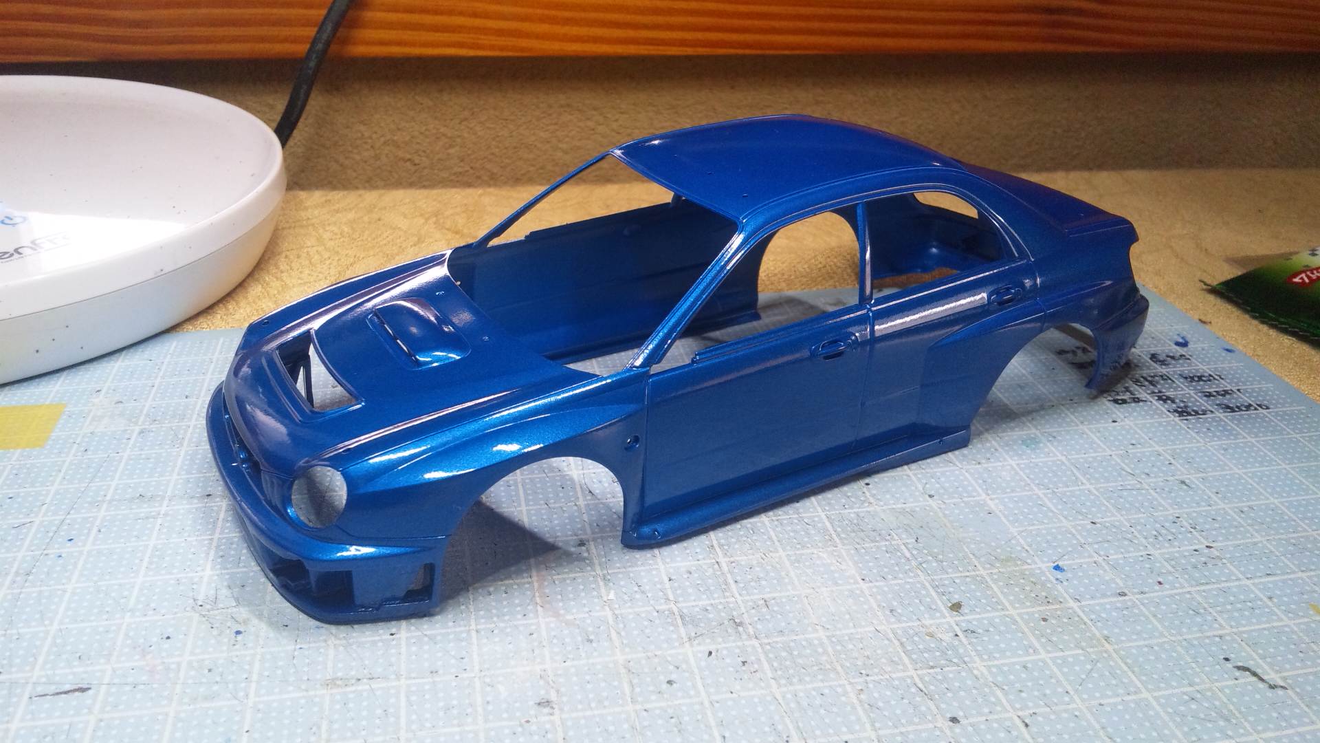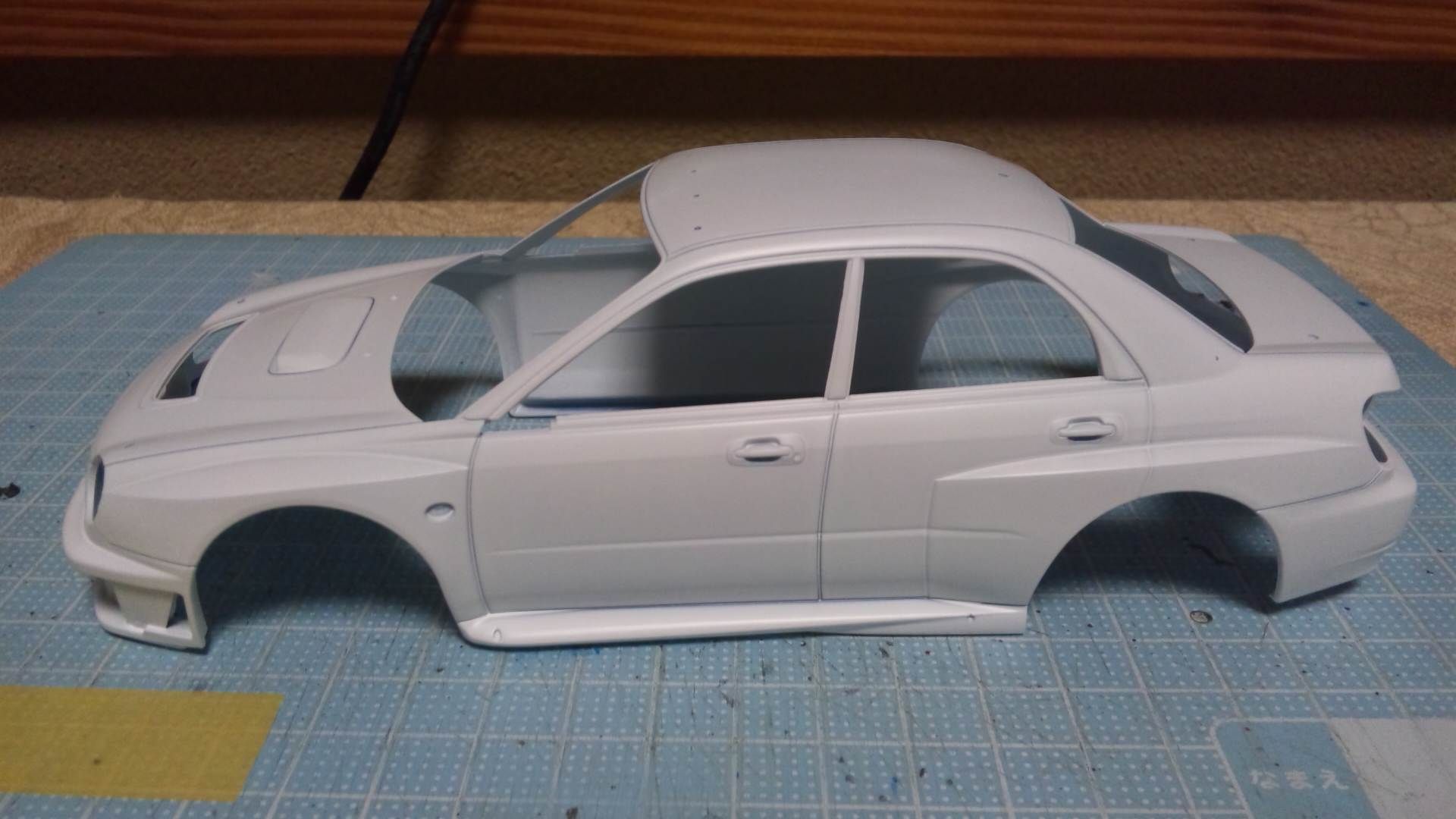 風に飛ばされた埃がちょいと付いていたので、青塗装前に2000番のペーパーを軽くあてました。