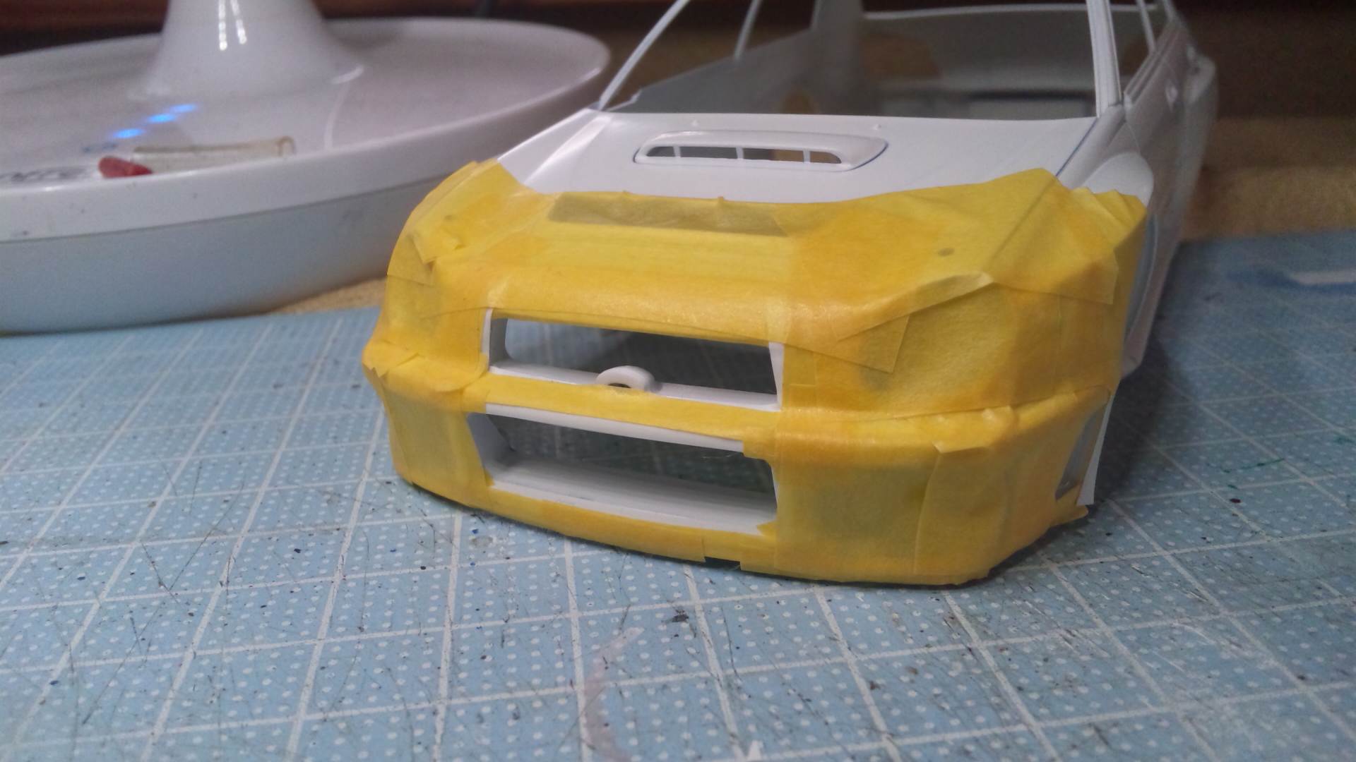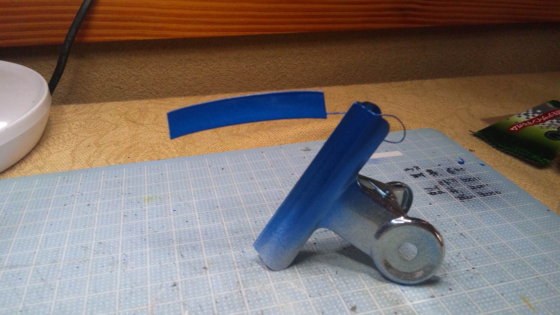 ボディー全体の青塗装前に、間口が小さくて奥がある個所を先に塗装するためマスキングします。