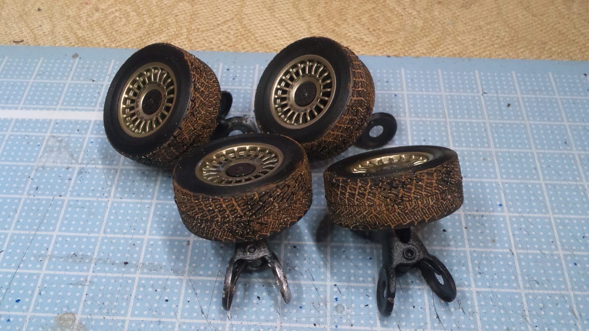 タイヤ は溝があるので、一応汚しておきました。これをやってしまうことで、ボディーも必ず汚すんだよと自分に言い聞かせるためでした。