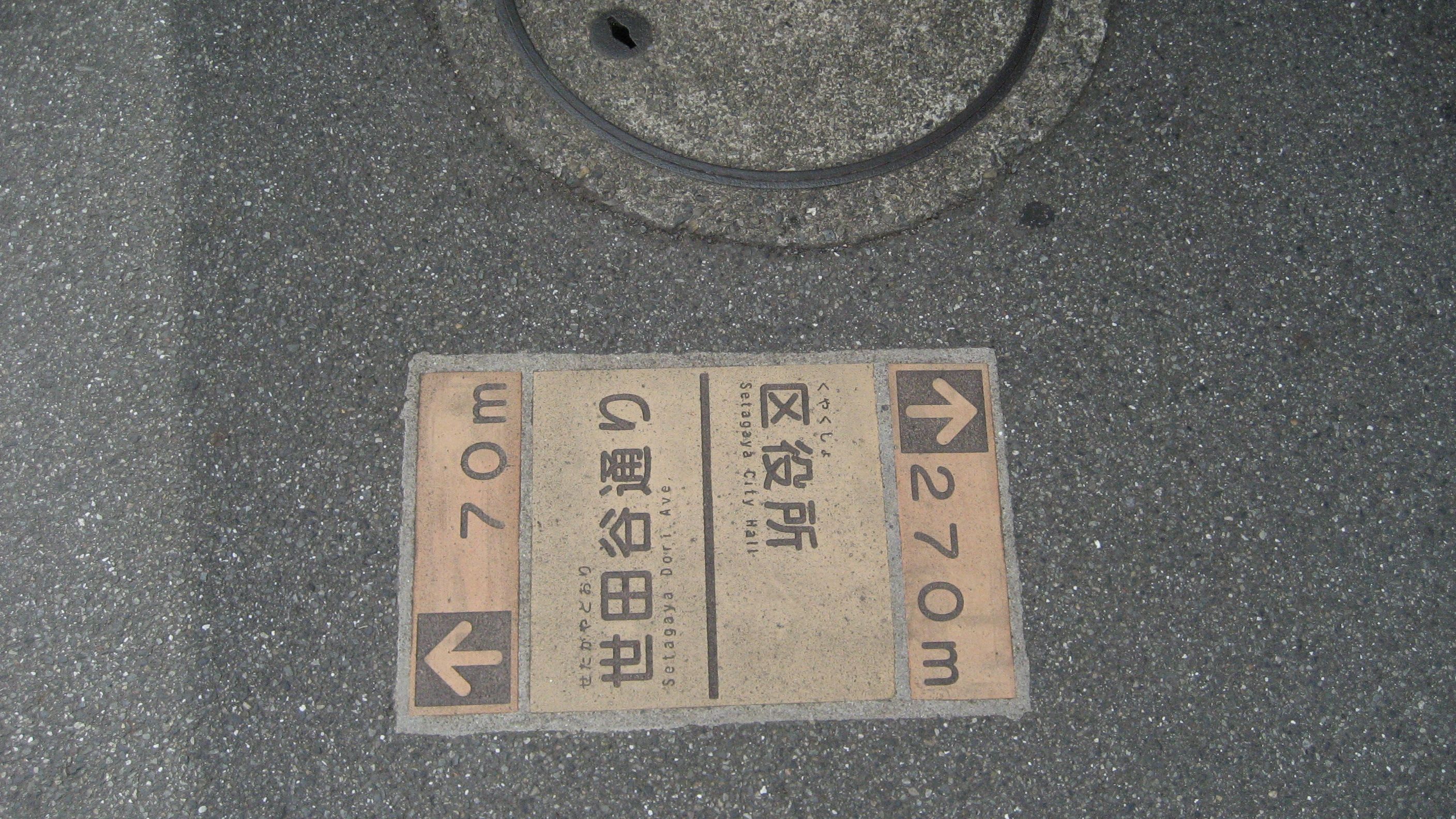 思い立って世田谷区役所方面にきました。前回 松陰神社に行った時には通らなかった道に入ってみると、道路にこんな案内が貼ってありました。下を向いて歩かないと気付きません。辛いことはありませんでしたが、私はうつむいて歩いていたのでしょう。坂本九ちゃんだったら気付かなかったでしょう……