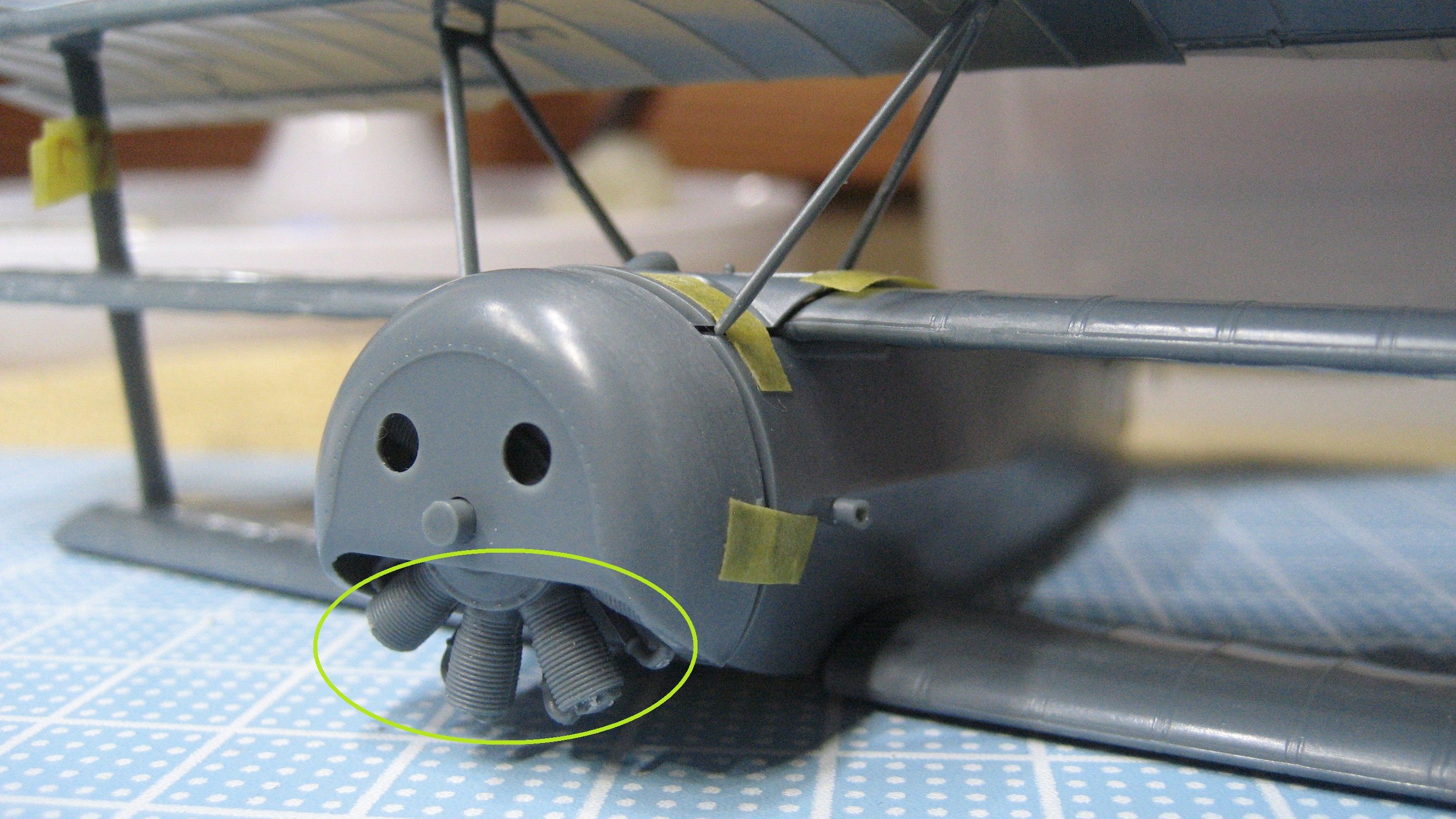 エンジンもどき は露出している部分があります。一応プロペラ回る構造です。やっぱりこれとか機銃はドライブラシでしょうね~