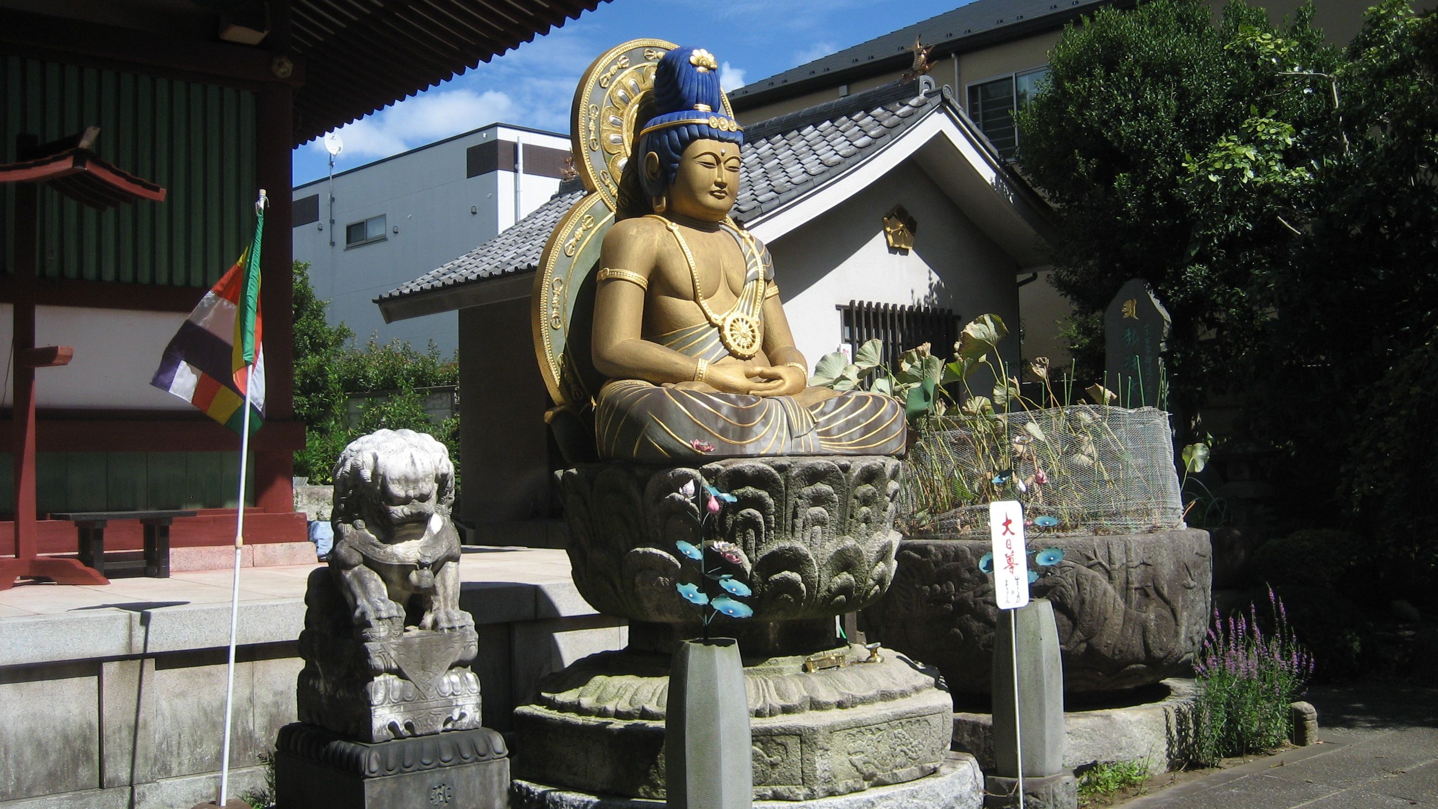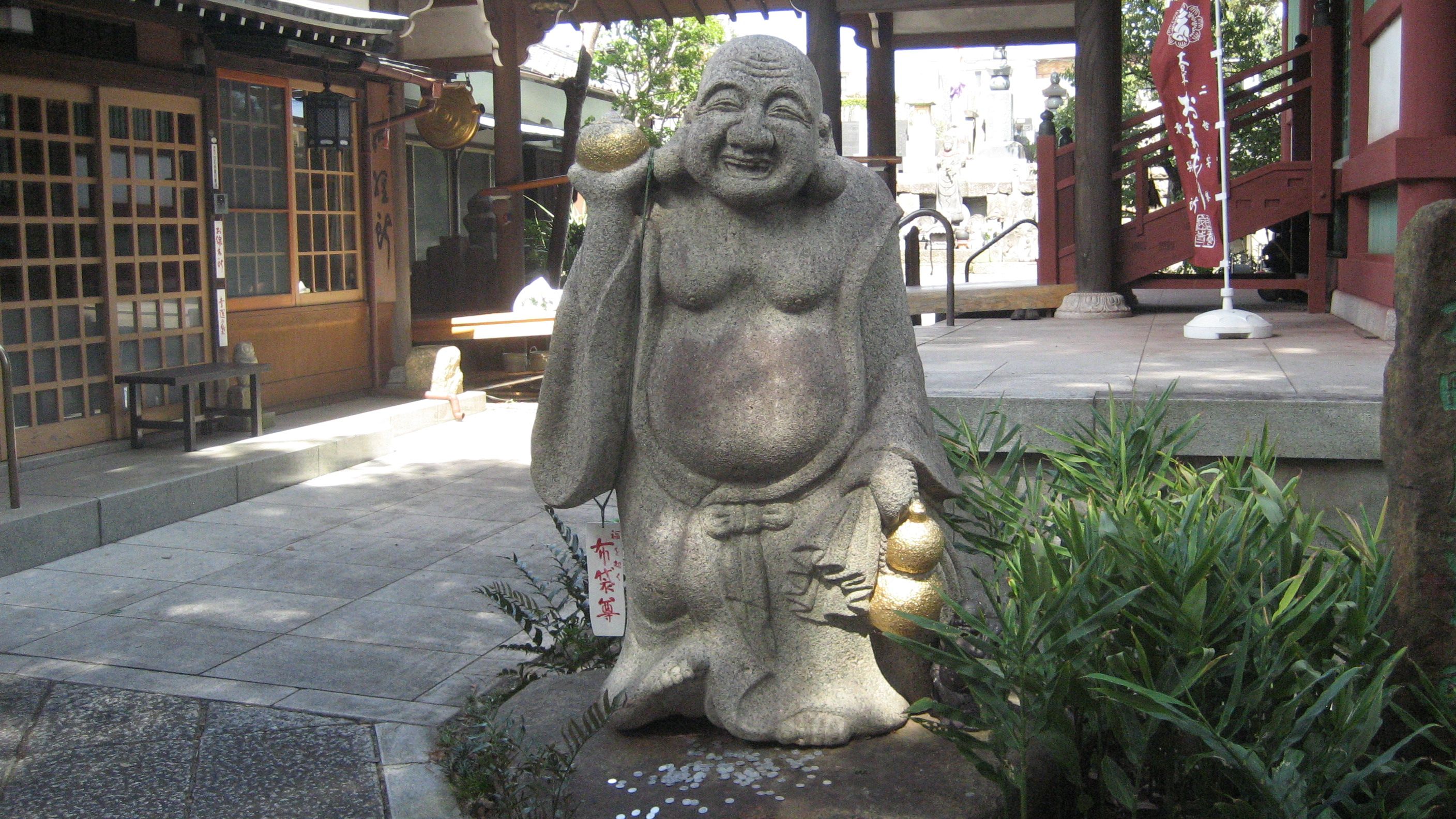 福を招く布袋尊……お腹の出っ張りがちょっと足りないかしら? 左手にしている金の瓢箪が気になりました。布袋さんも酒好きなのね~