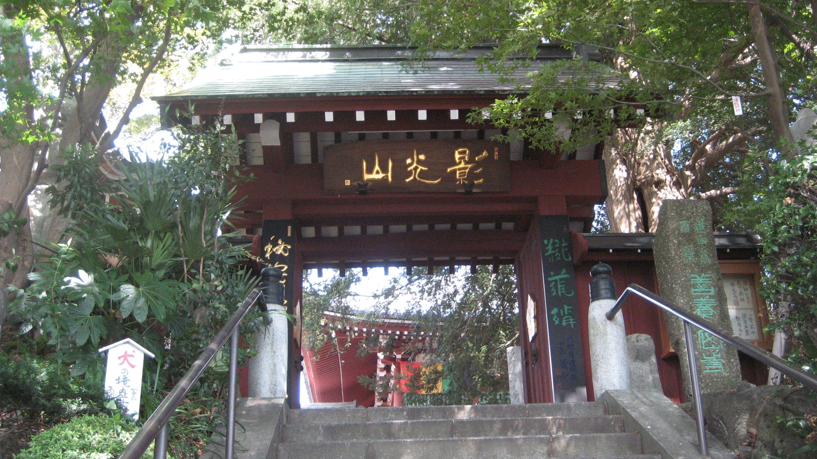 赤い山門……山号が[影光山]なのでしょう。金ぴか文字です。