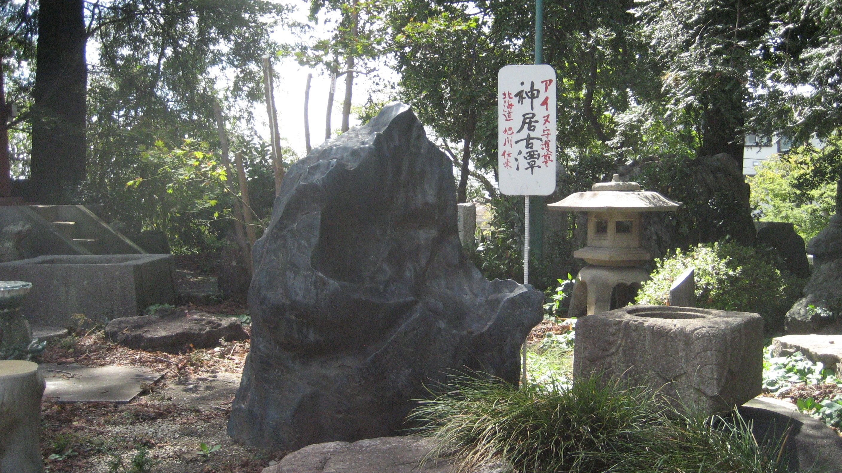 神居古潭……北海道石狩川を望む地からもってきた石なのでしょう。神の住む場所……水上交通に依存していたアイヌにとって、そうとうな深さのある石狩川は難所だったみたいですが、なんでここにあるのかしら?