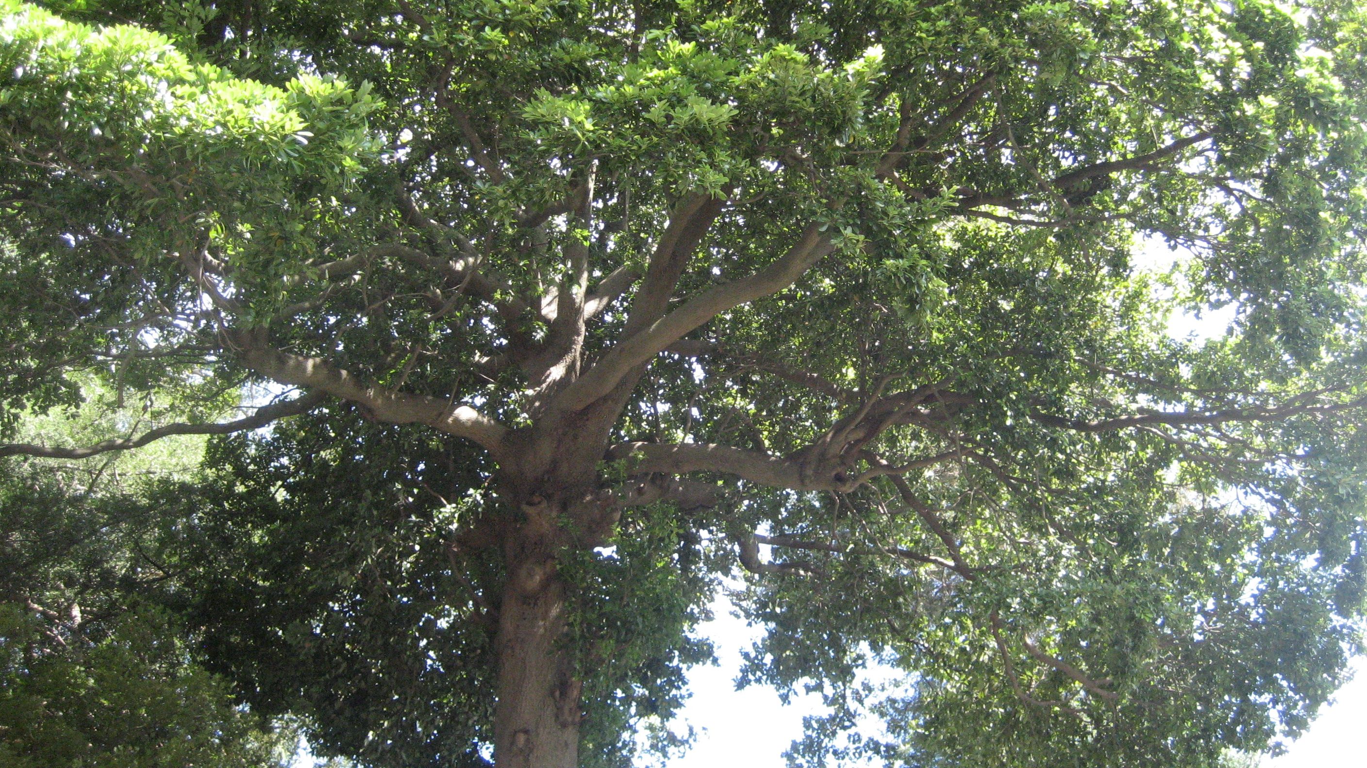 見上げると、それはそれはみごとな枝ぶりに葉がたくさん……ハクレンの樹は季節はずれなのでパスしてしまいました。