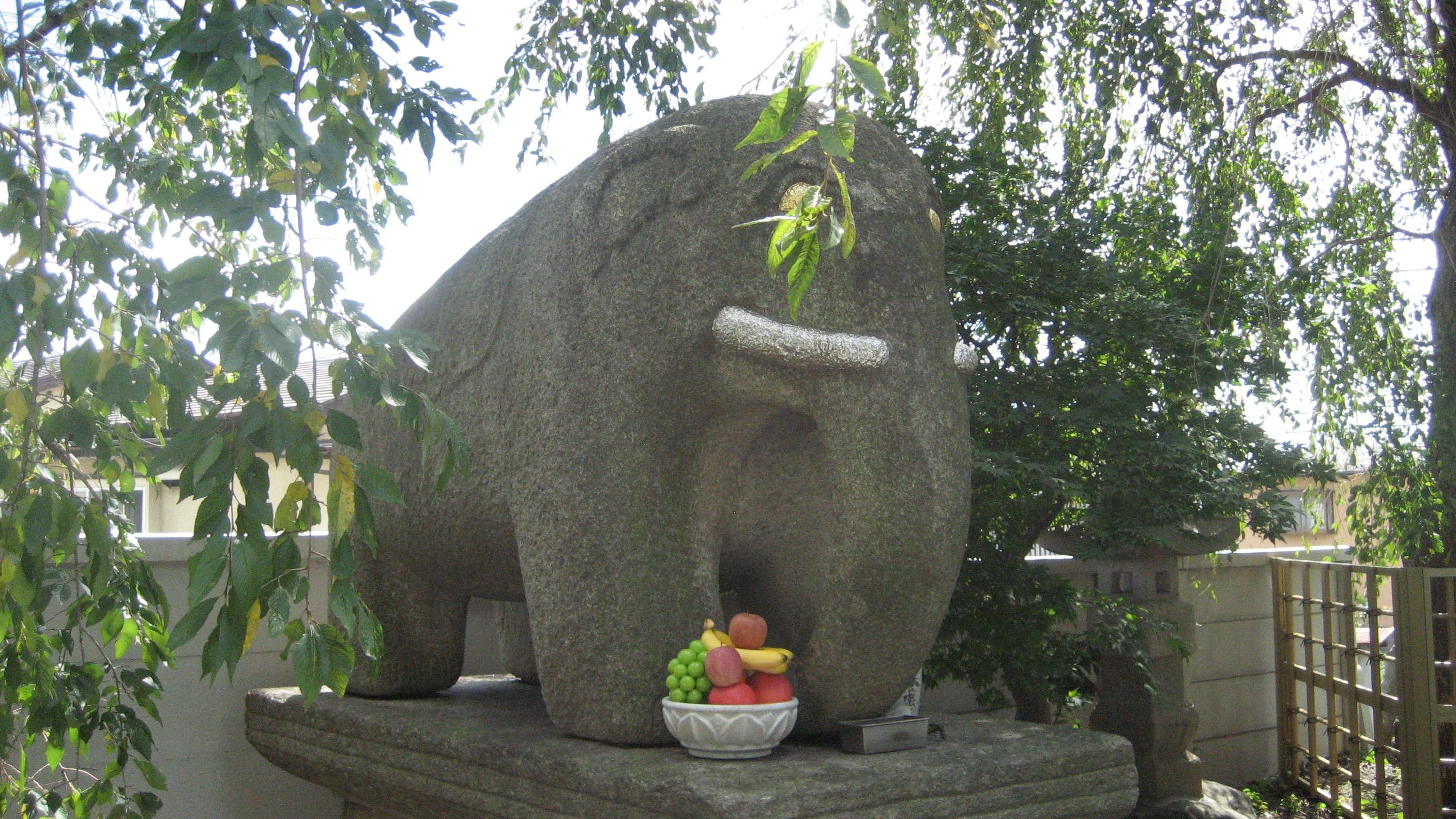 駐車場の片隅にもゾウがいました。やっぱりバナナが似合います。本当に石像のテーマパークみたいなお寺でした。