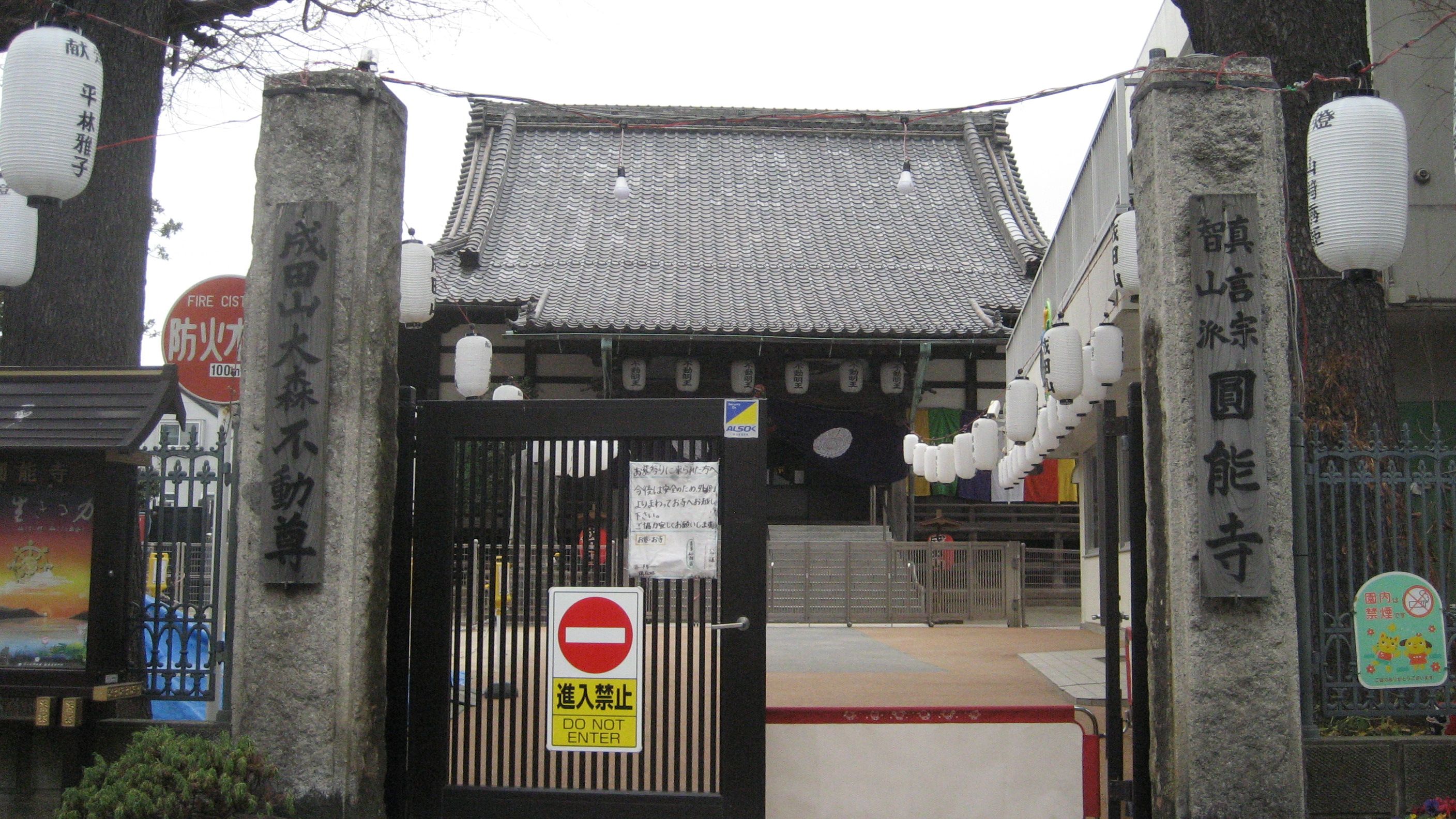 ​  成田山圓能寺 ……真言宗智山派で、元来は海光山明王院だったのを昭和27年に成田山新勝寺の末寺院となったそうです。ご本尊が不動明王​なので、提灯にも書かれていました。