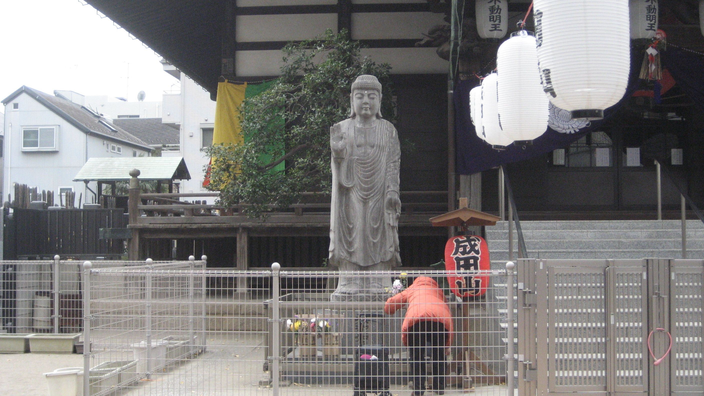 お釈迦様でしょう……熱心にお参りされていました。私もお参りしたかったのですが、見てのとおりフェンスで通せん坊……なので断念しました。