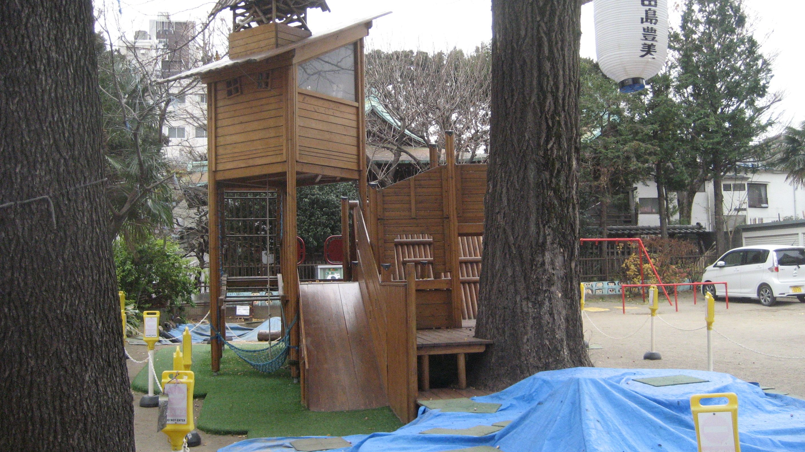 境内に遊具が置かれていたり、ようするの「若草幼稚園」として使われているみたいです。園児の安全を考えての通行禁止だったようです。見つかったら不審者に思われたことでしょう。