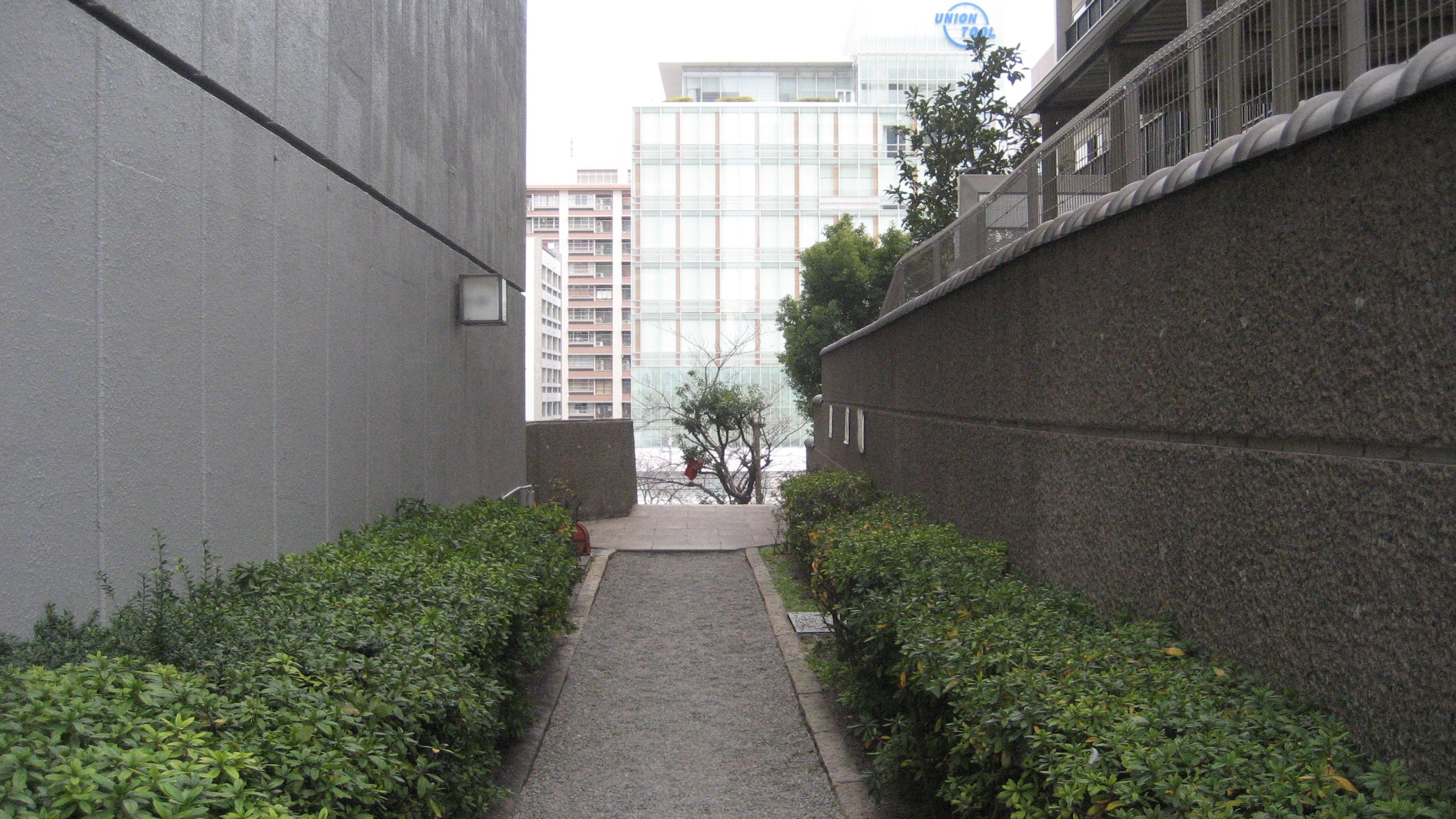 表通りからビルの間を抜けて行きます。なぜか?この通路は玉砂利でした。