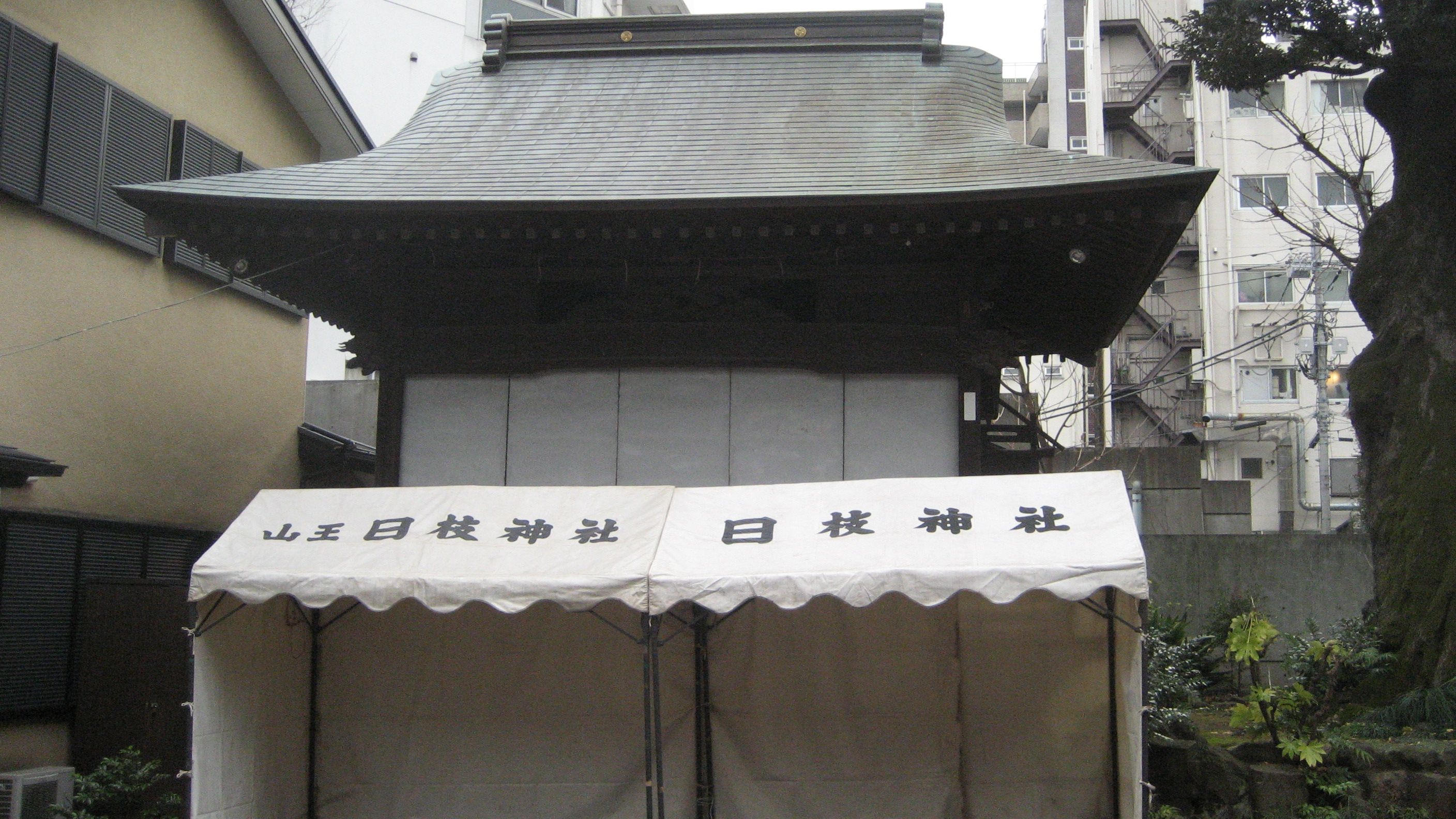 テントが能楽堂を隠しています……ちょっと残念…片付けてくれる氏子さんがいないのかしら?