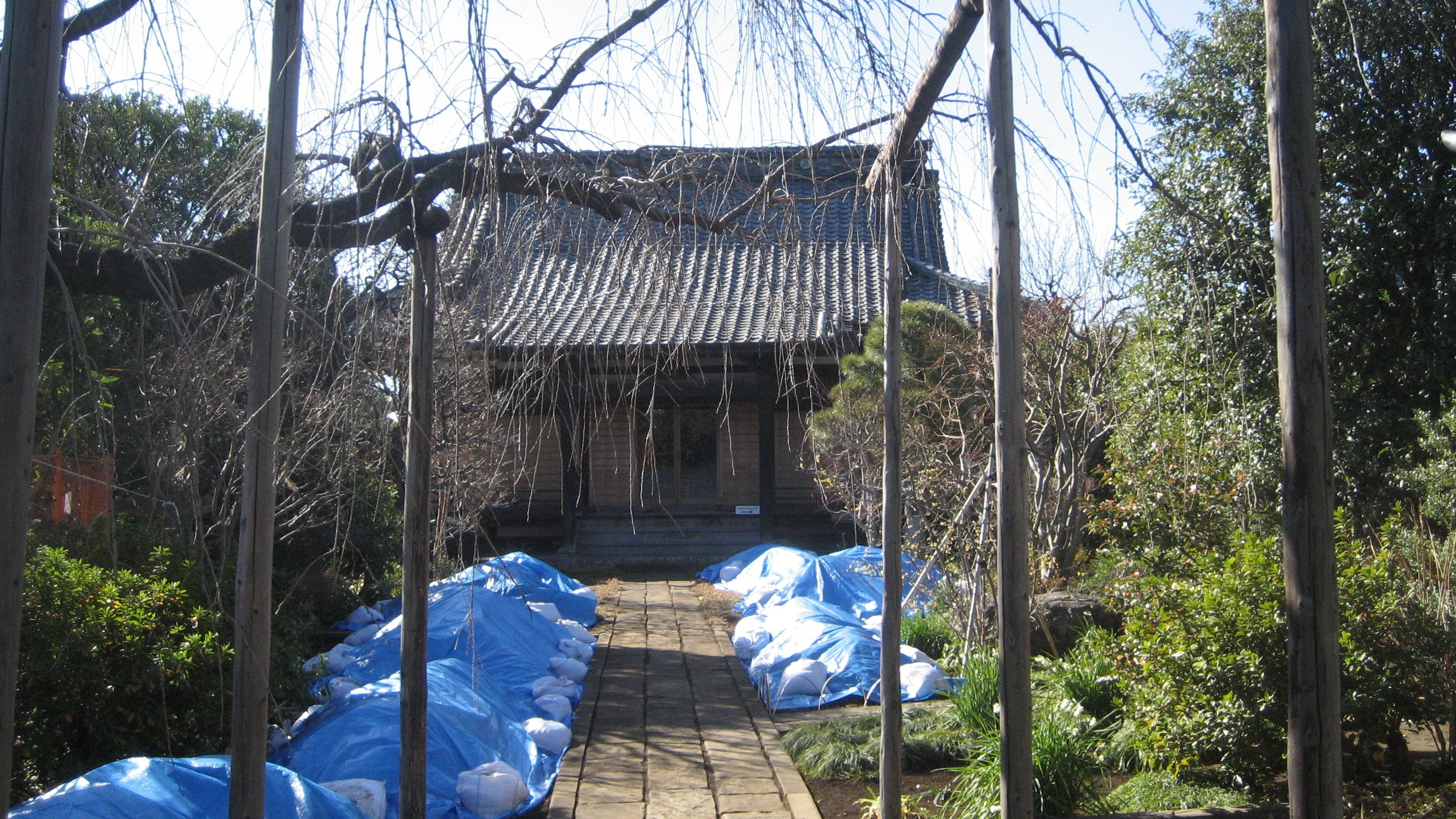 ​  法養寺境内 ……​ビニールシートは何かしら?
