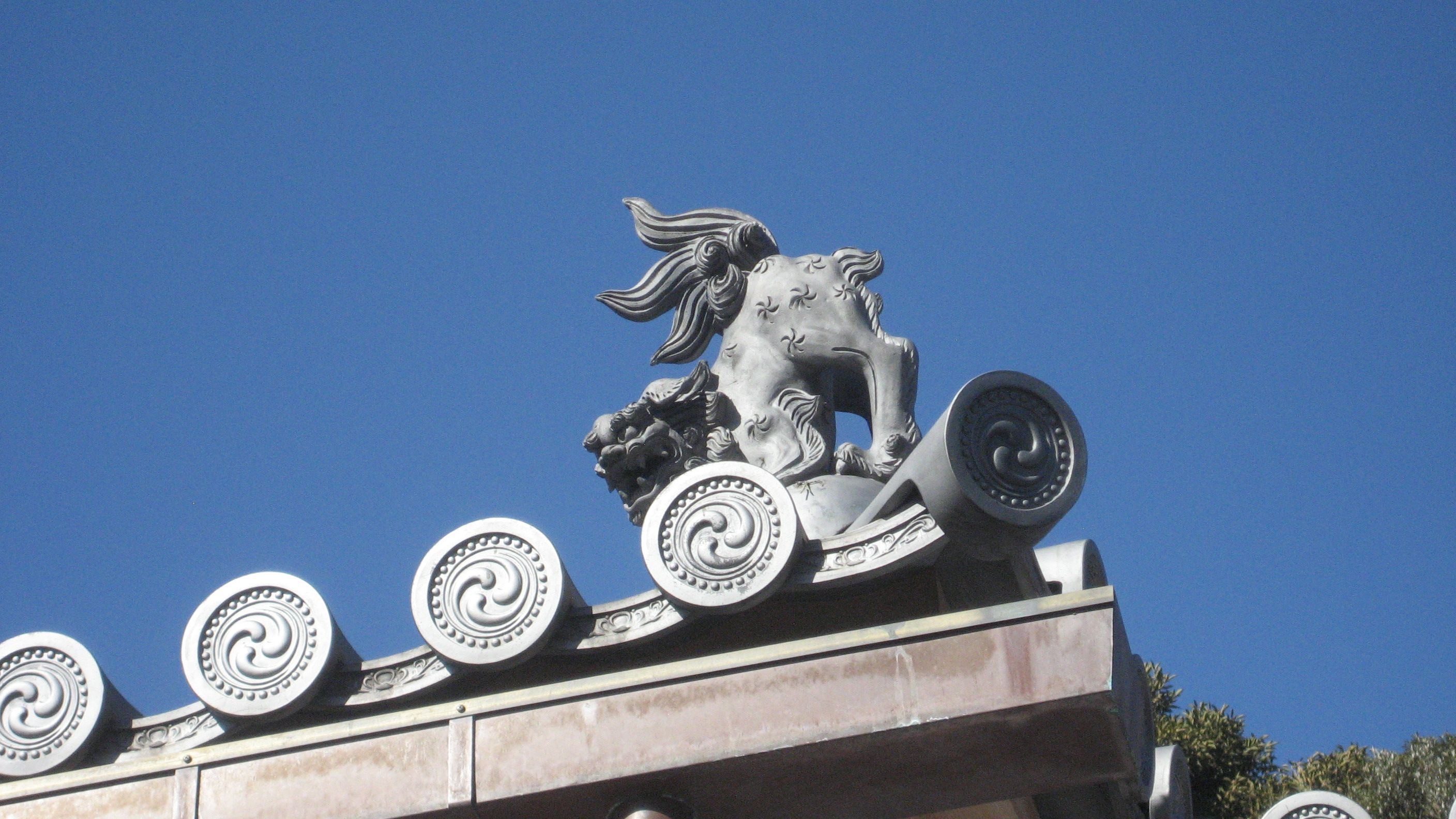 ​  堂の鬼瓦​ ……獅子舞みたいです…​