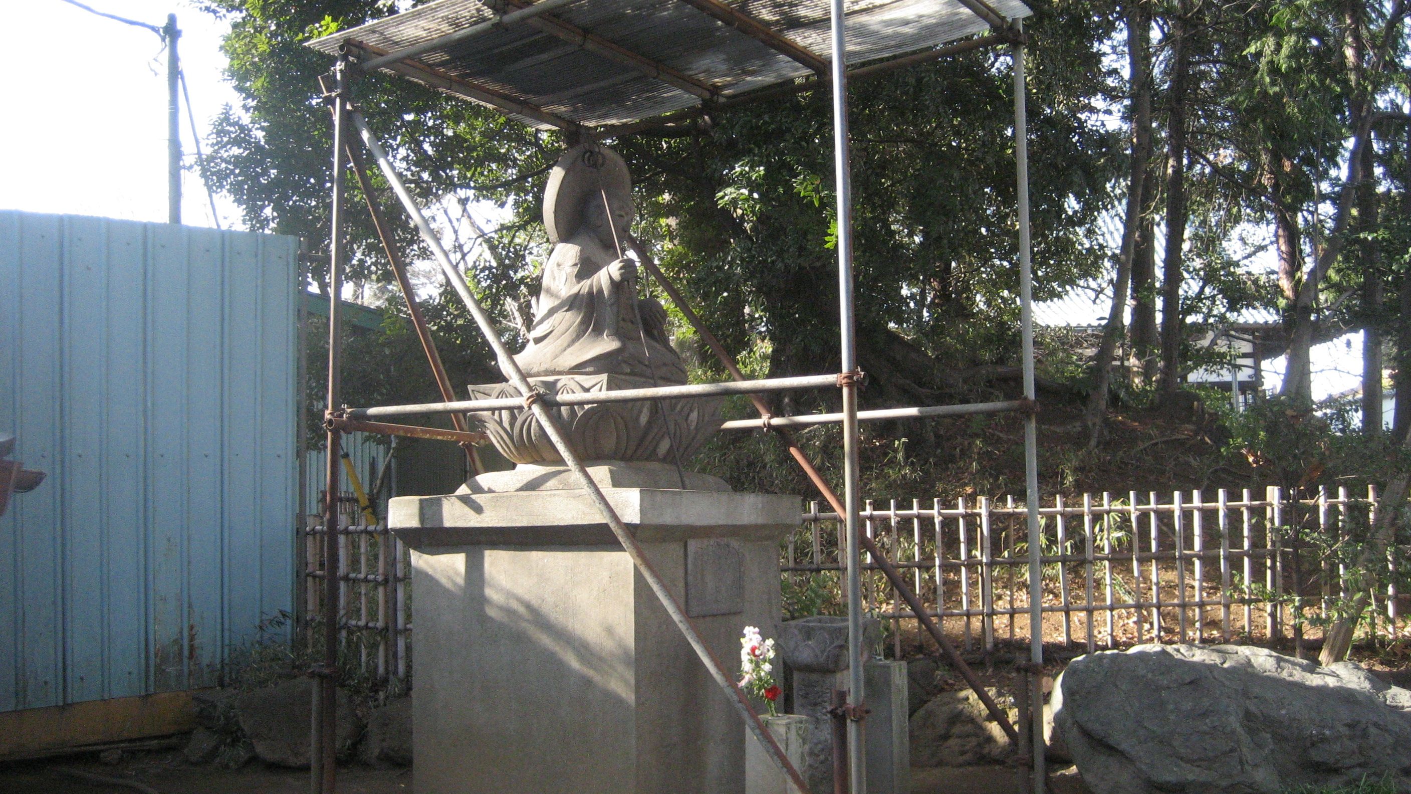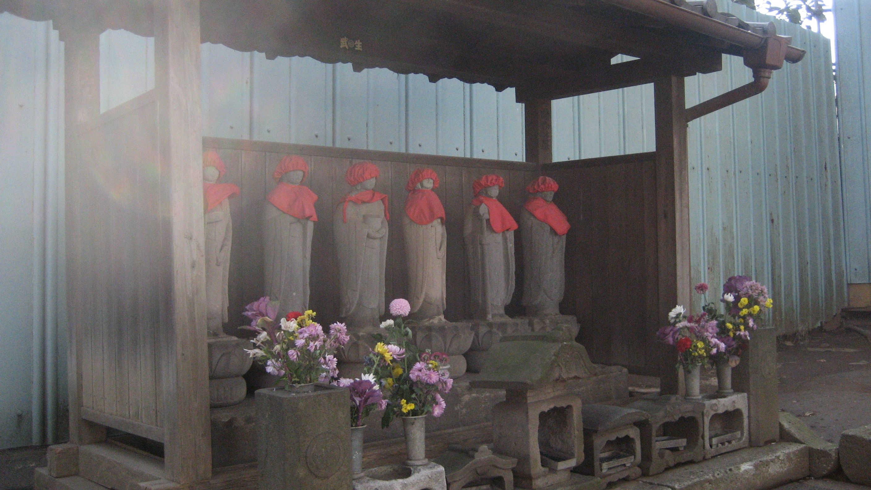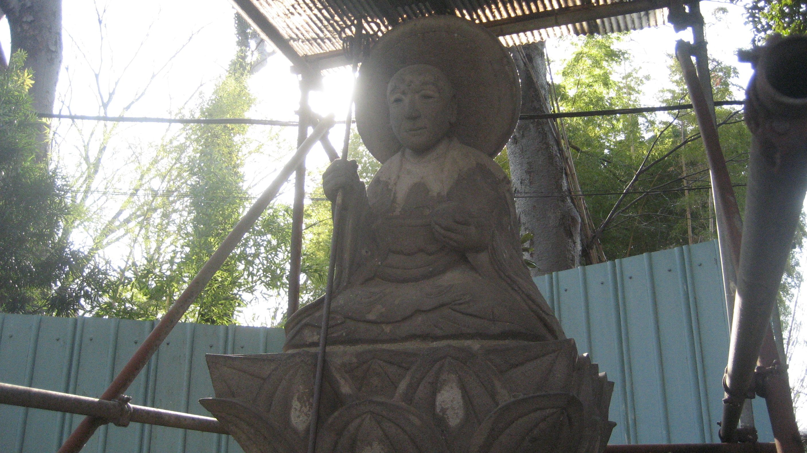 上記それぞれ、山門をくぐって左側にならんでおられましたが、ご覧のように鉄板のフェンスで囲まれていました。寺を挙げての大改修中かもしれません。