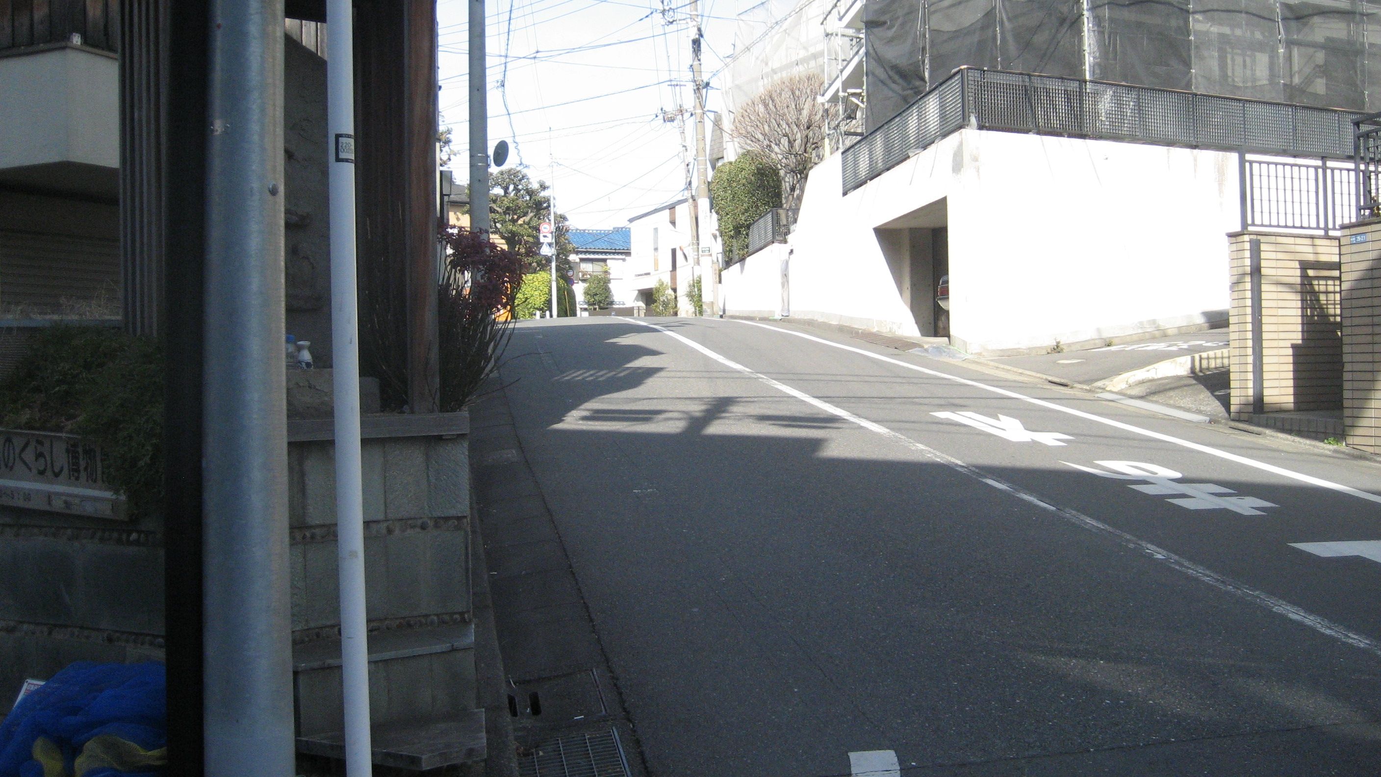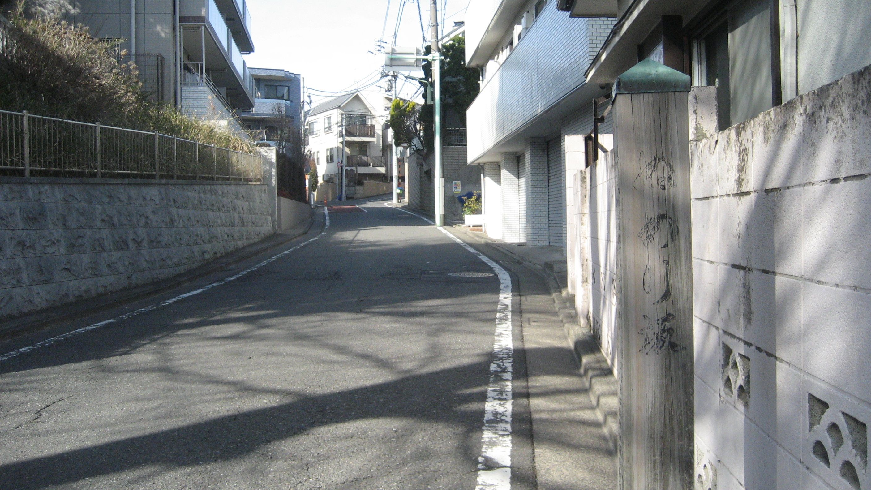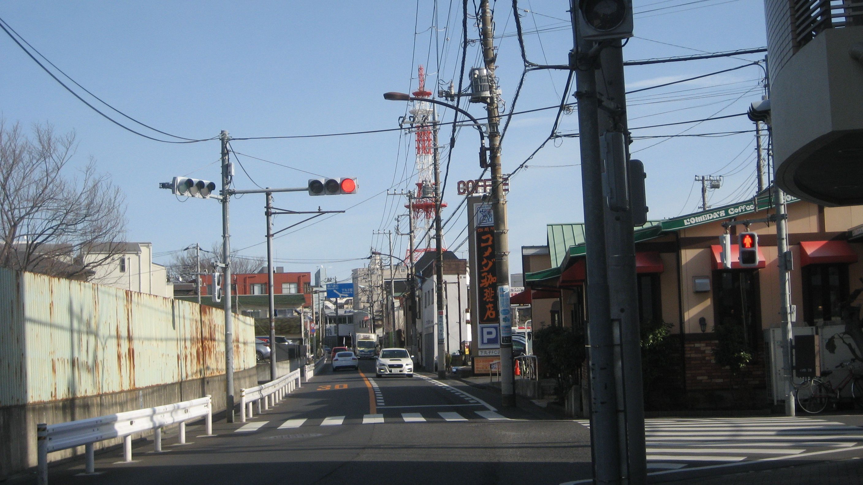 コメダ珈琲を過ぎて振り返ったところです……左側の錆汚れたフェンスの後ろに光明池があるはずですが、残念ながら完全に隠されていました。覗き見すらできなかっがです。なんでかな~