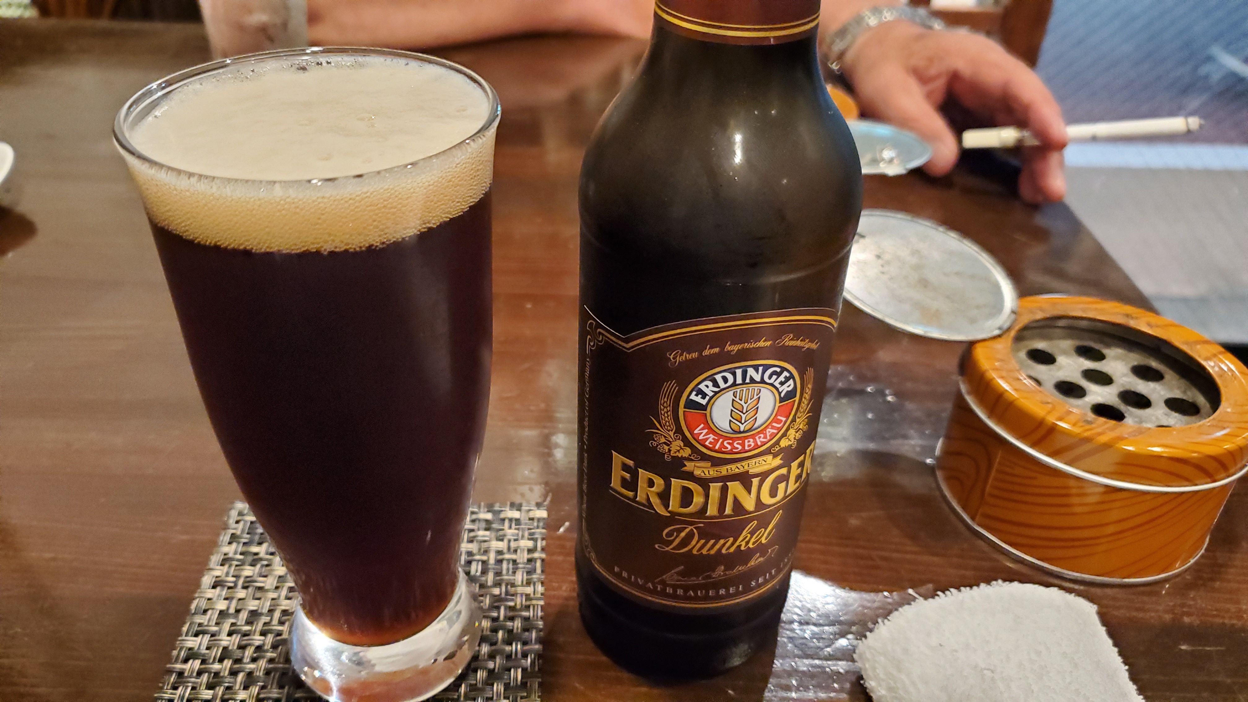 でもって、行きがかり上というか? 近くのビール屋に寄ることになって、一杯飲んできました。「ERDINGER」……ドイツのビール会社……「Dunkel」という黒ビールです。さっぱりしていて初心者向けかもしれません。