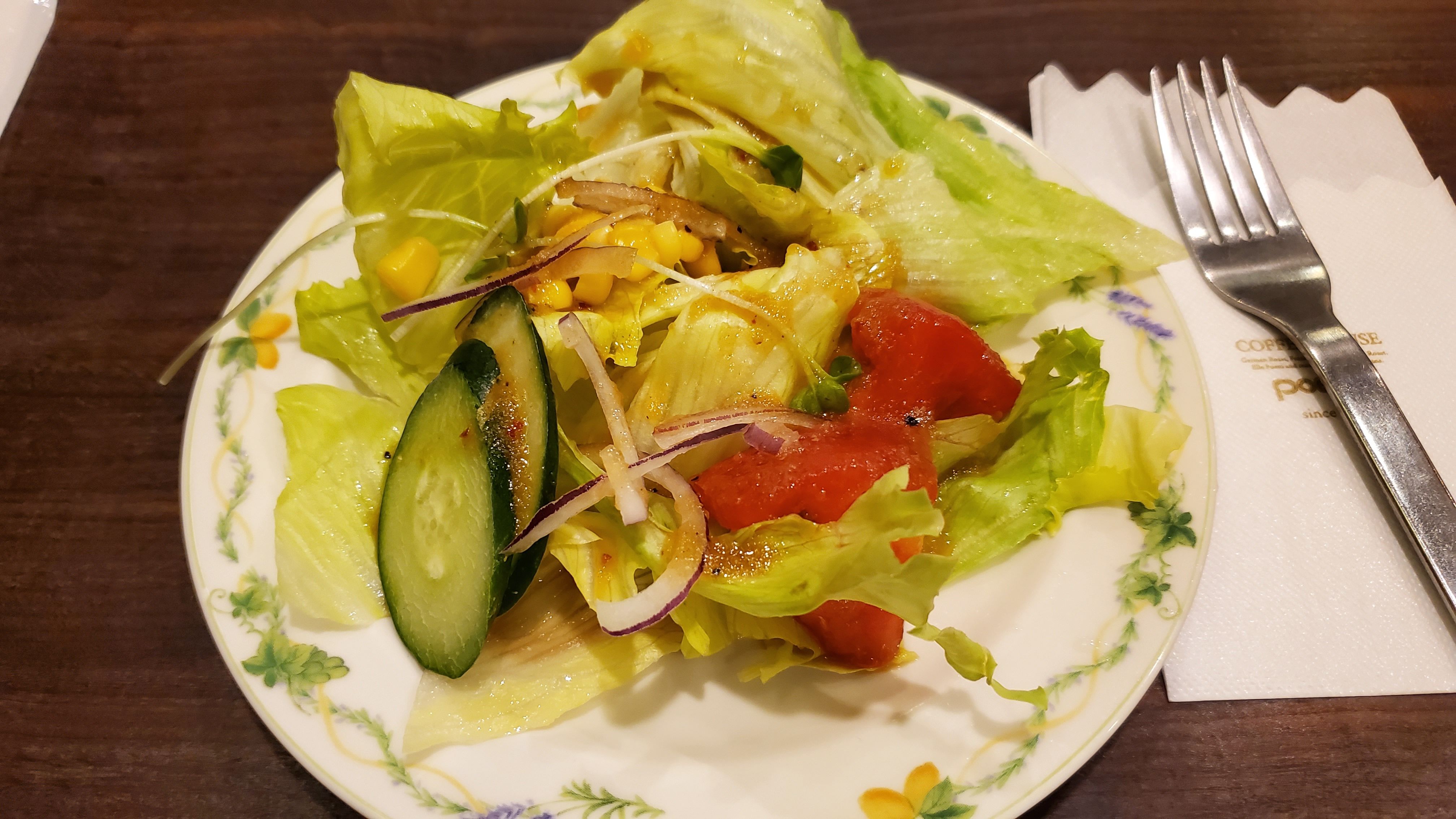 ドレッシングは初めて「和風」をお願いしてみた。こっちの方が好き……トマトも美味しいよ~ 連れ合いは嫌いだけどね~