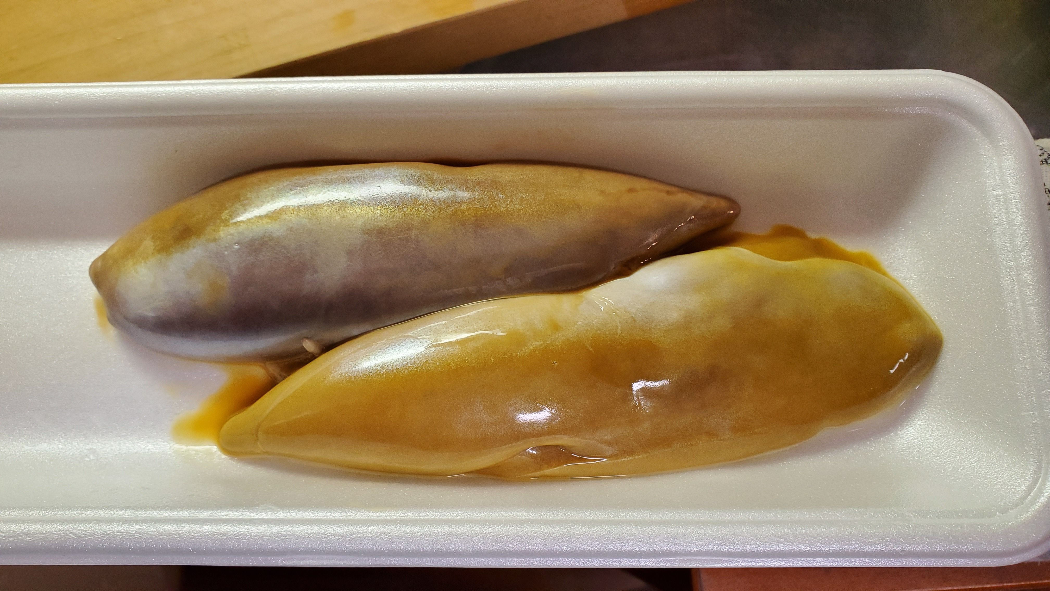 きれいにむけましたが、今回は廃棄……塩辛にする身がなかったので……塩をふって水抜きして冷凍にしておく手もありましたが、「また、大きいのにお目にかかるだろう」と思ったのでサヨナラ…