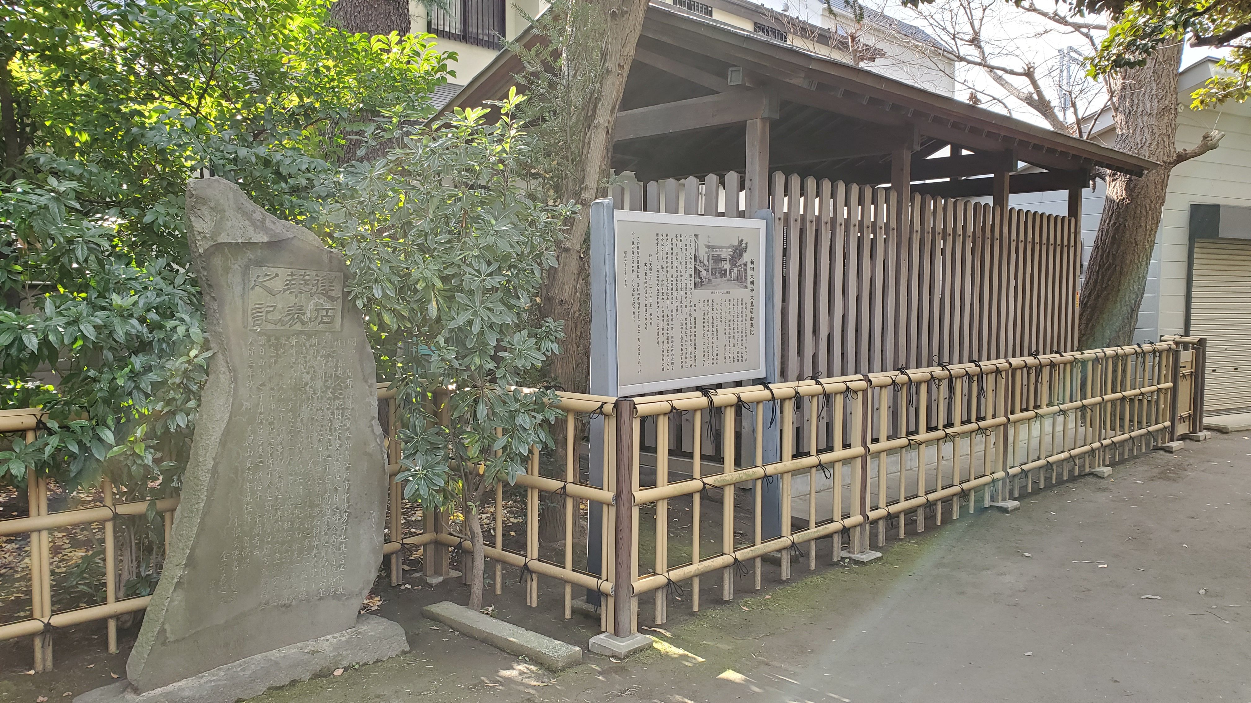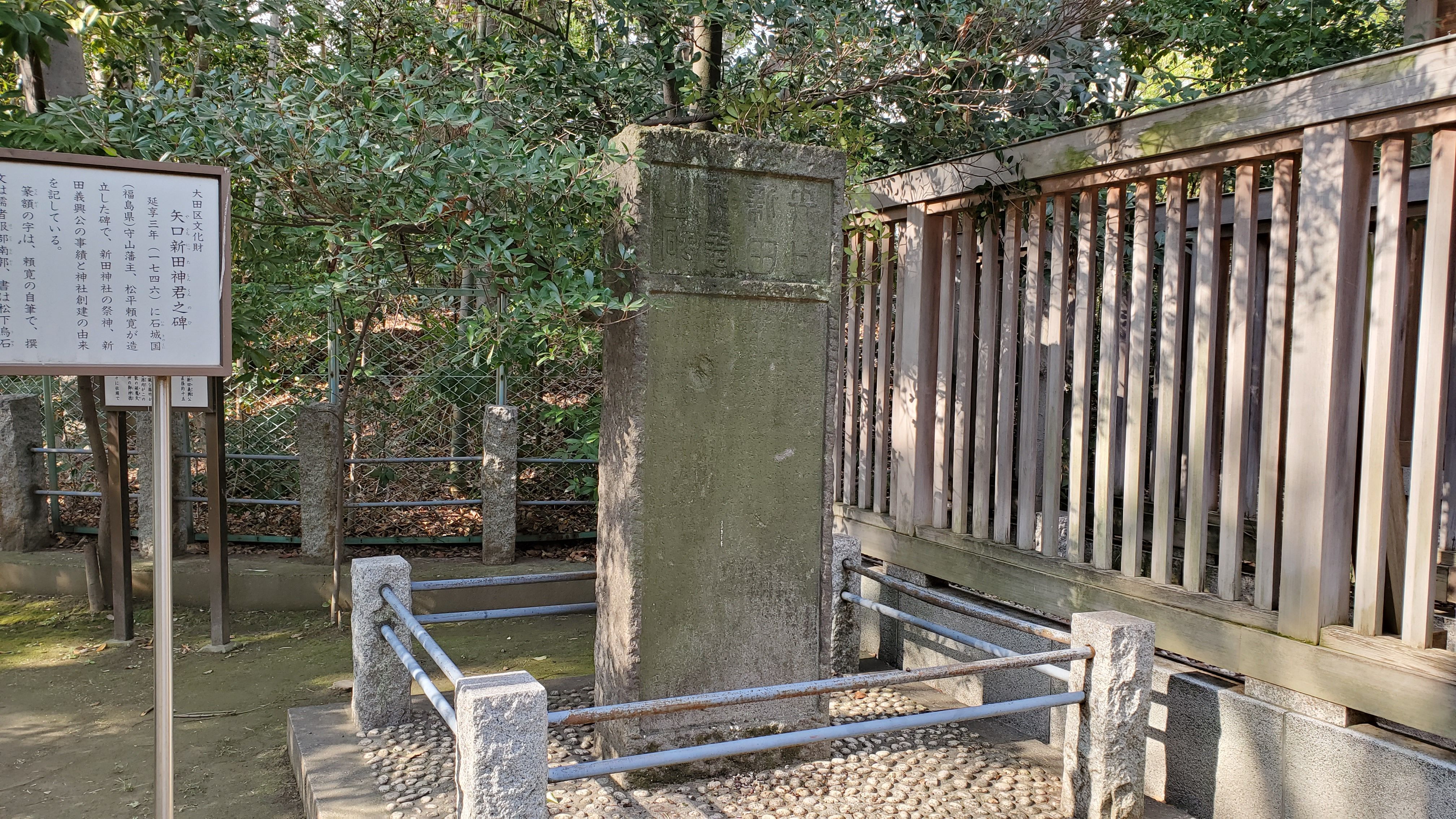 矢口新田神君之碑…… 新田義興(よしおき)公の事績と神社創建の由来が記されているそうですが、全く読めません。延享3年(1746年)に石城国(福島県)守山藩主、松平頼寞(よりひろ)が造立した碑で、大田区の文化財。江戸期の記念碑は大田区には数が少ないようです。