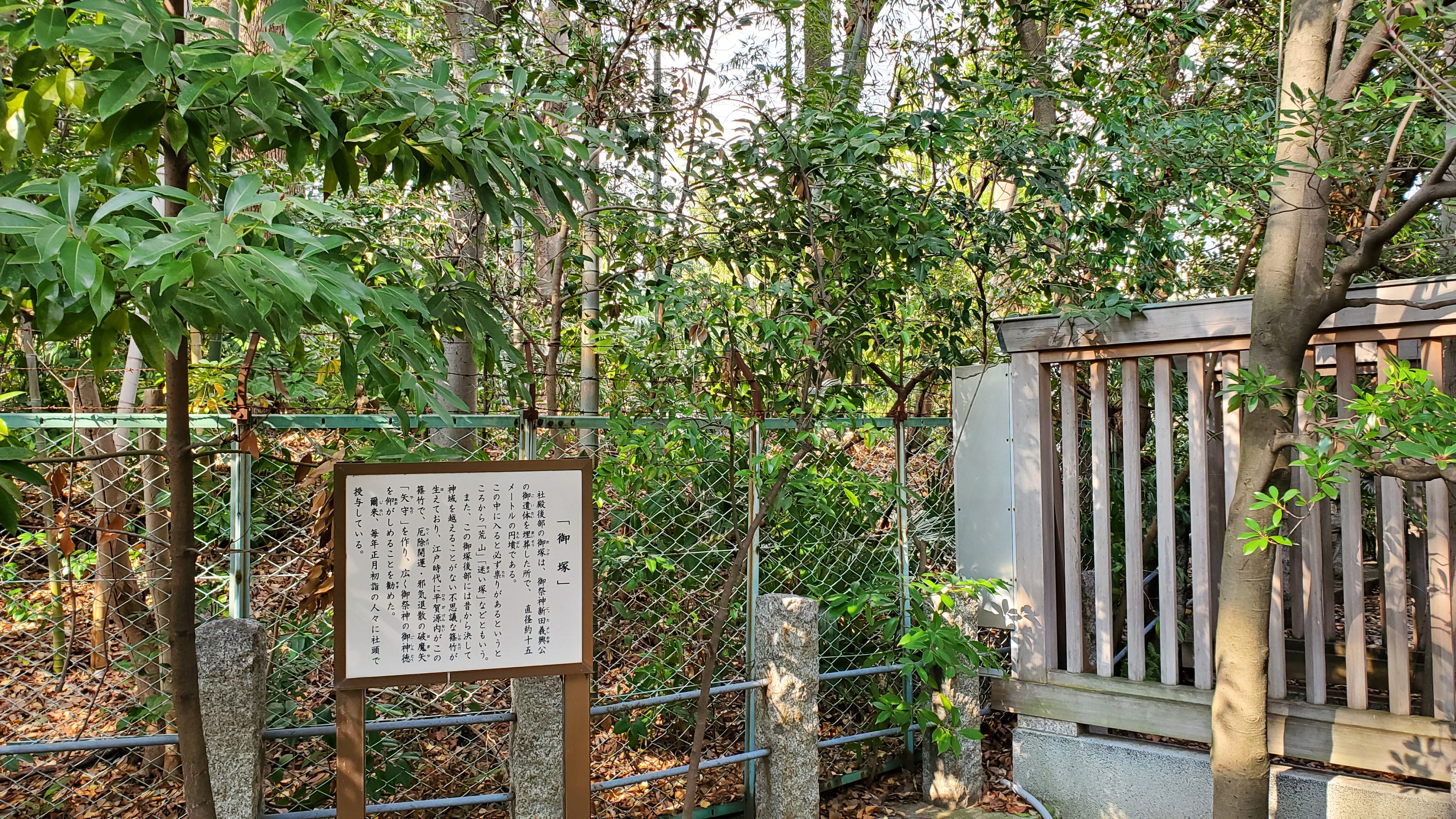 この社殿後方に「御塚」があると……フェンスや垣根で立ち入り禁止です。