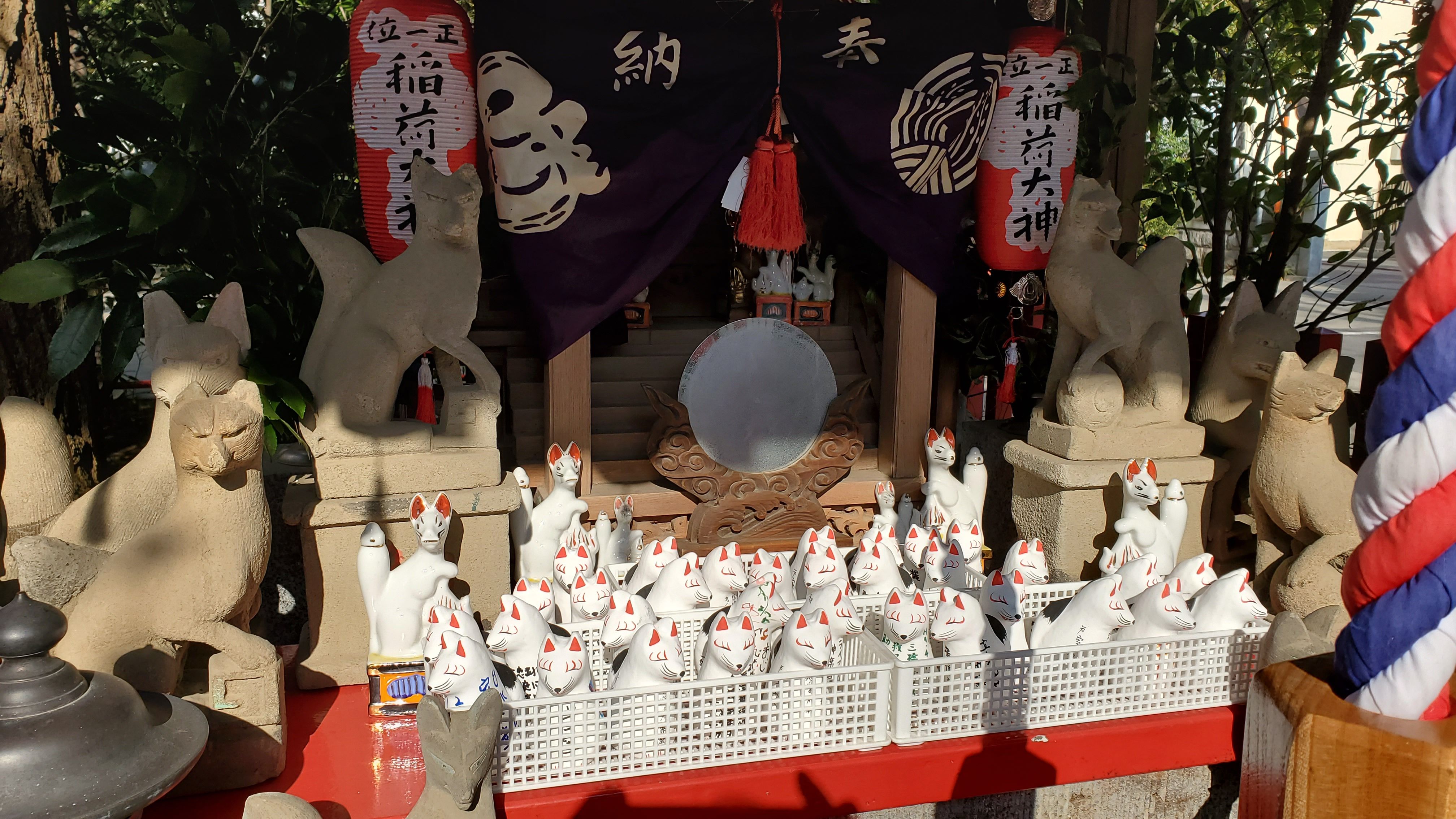 狐はお稲荷様の眷属(けんぞく)……たくさんの従者が守っています。
