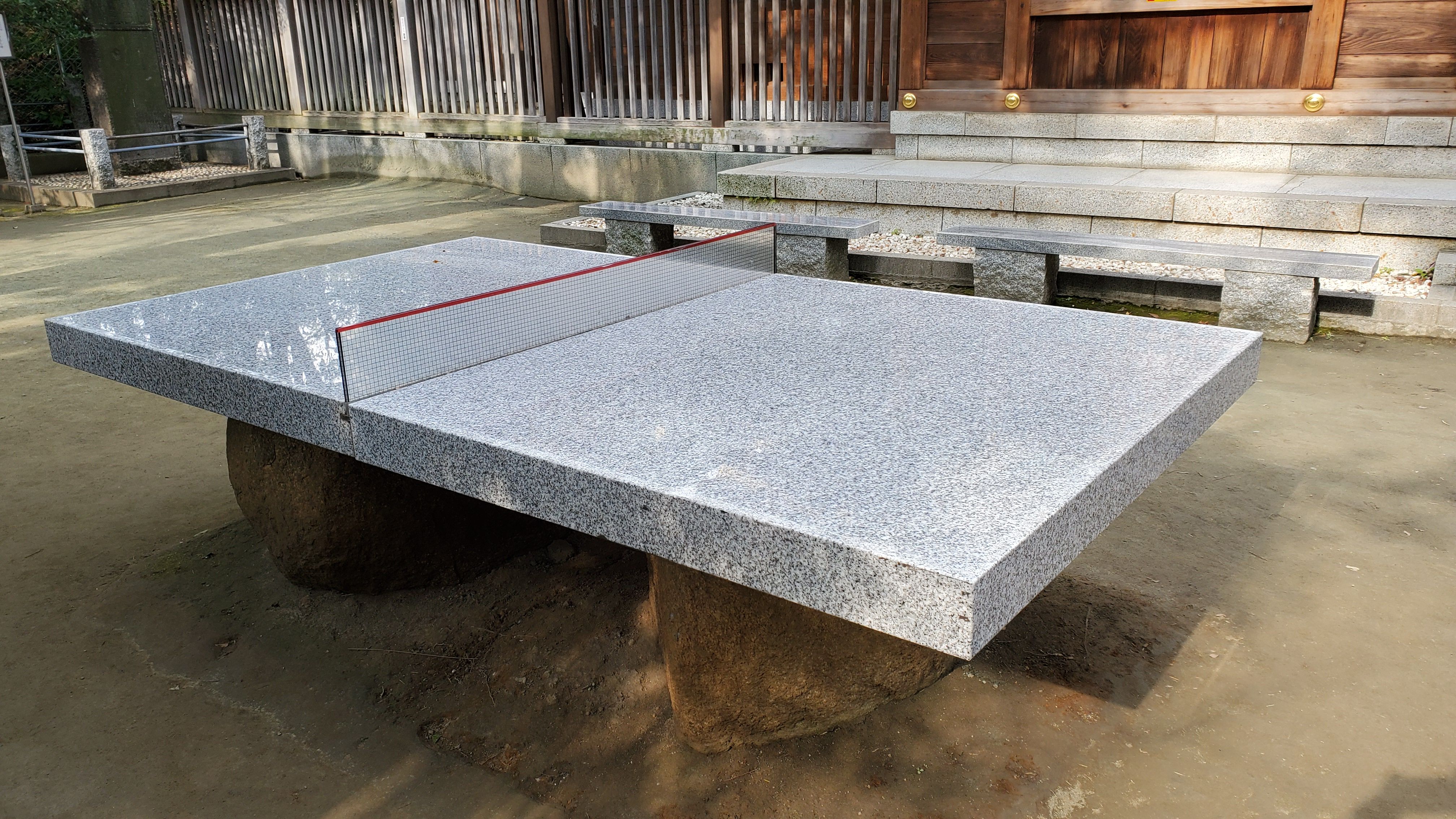 石の卓球台……毎日、無料でラケットと球を貸してくれるんだって。いいな~ そよそよ程度の風なら屋外でも卓球できます。連れ合いと一緒だったら、絶対にやったんだけどな~ いざ勝負! 自分で言うのもなんだけど「わしうまいで~」