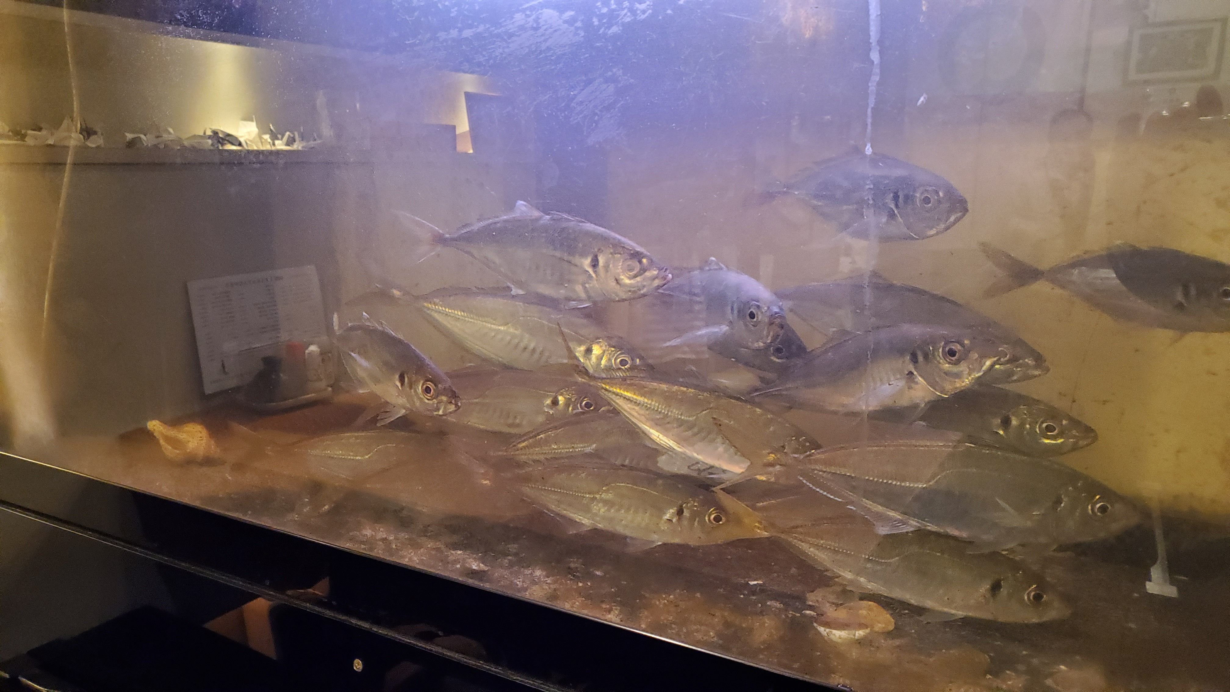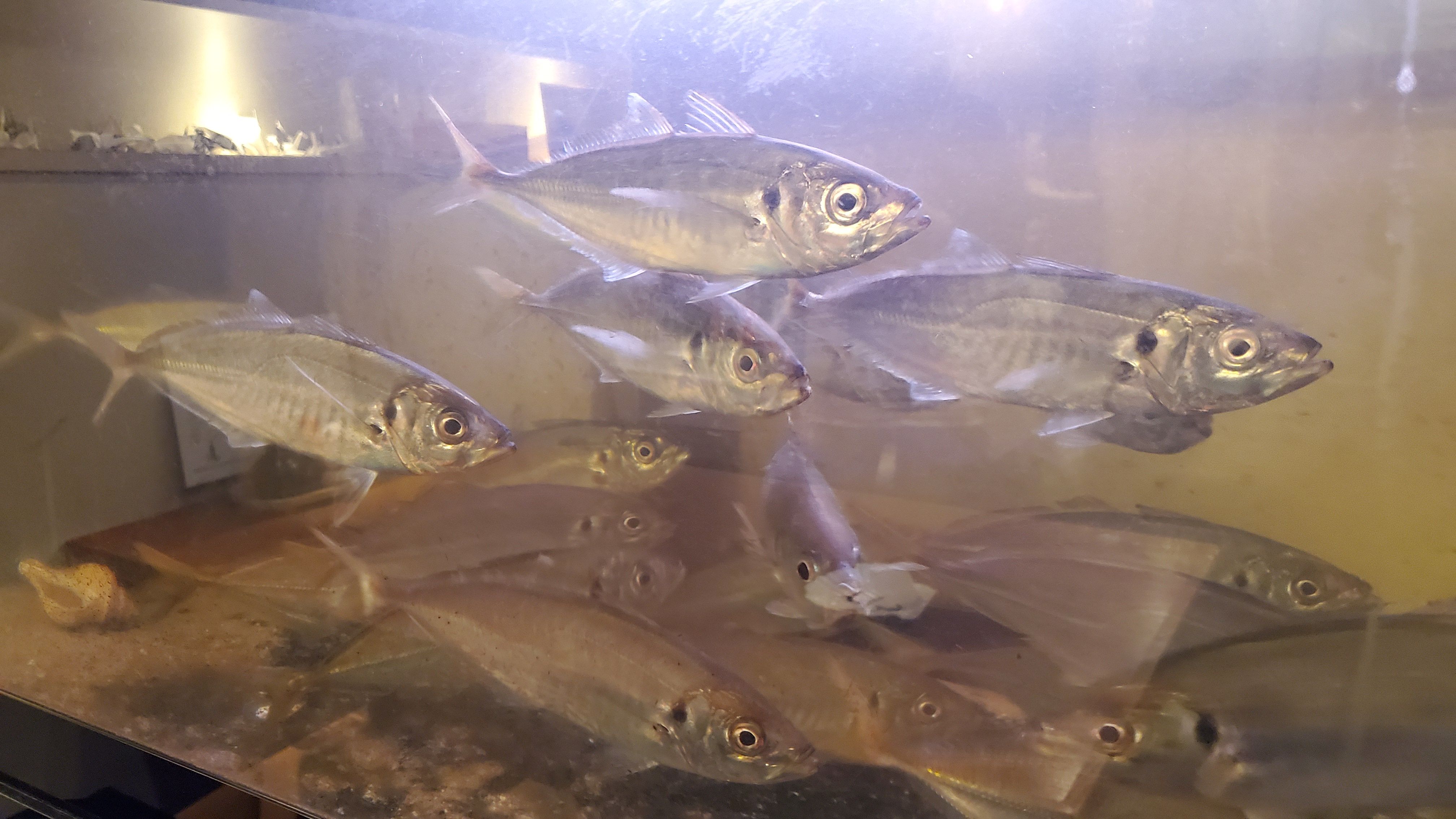 はるばる静岡から運ばれてきた鯵が放流されました。全員同じ方を向いて泳ぐのが魚の習性……どこかの政党政治家さんたちみたい…