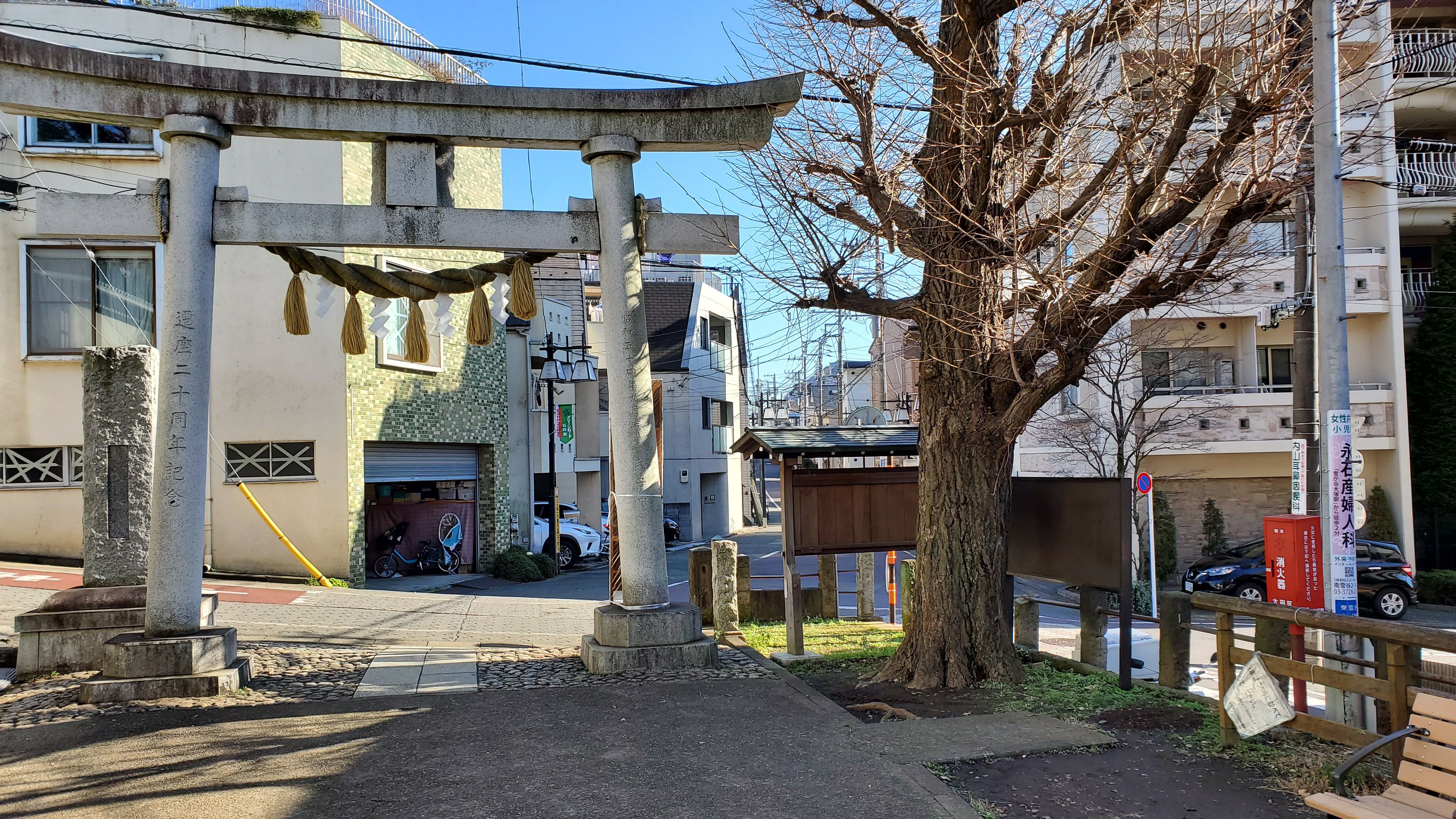 引き返して脇の参道鳥居……次への都合上こちらは使いません。ちなみに東急池上線石川台駅は、この鳥居を出て右に行けばすぐです。カールルイスなら10秒……