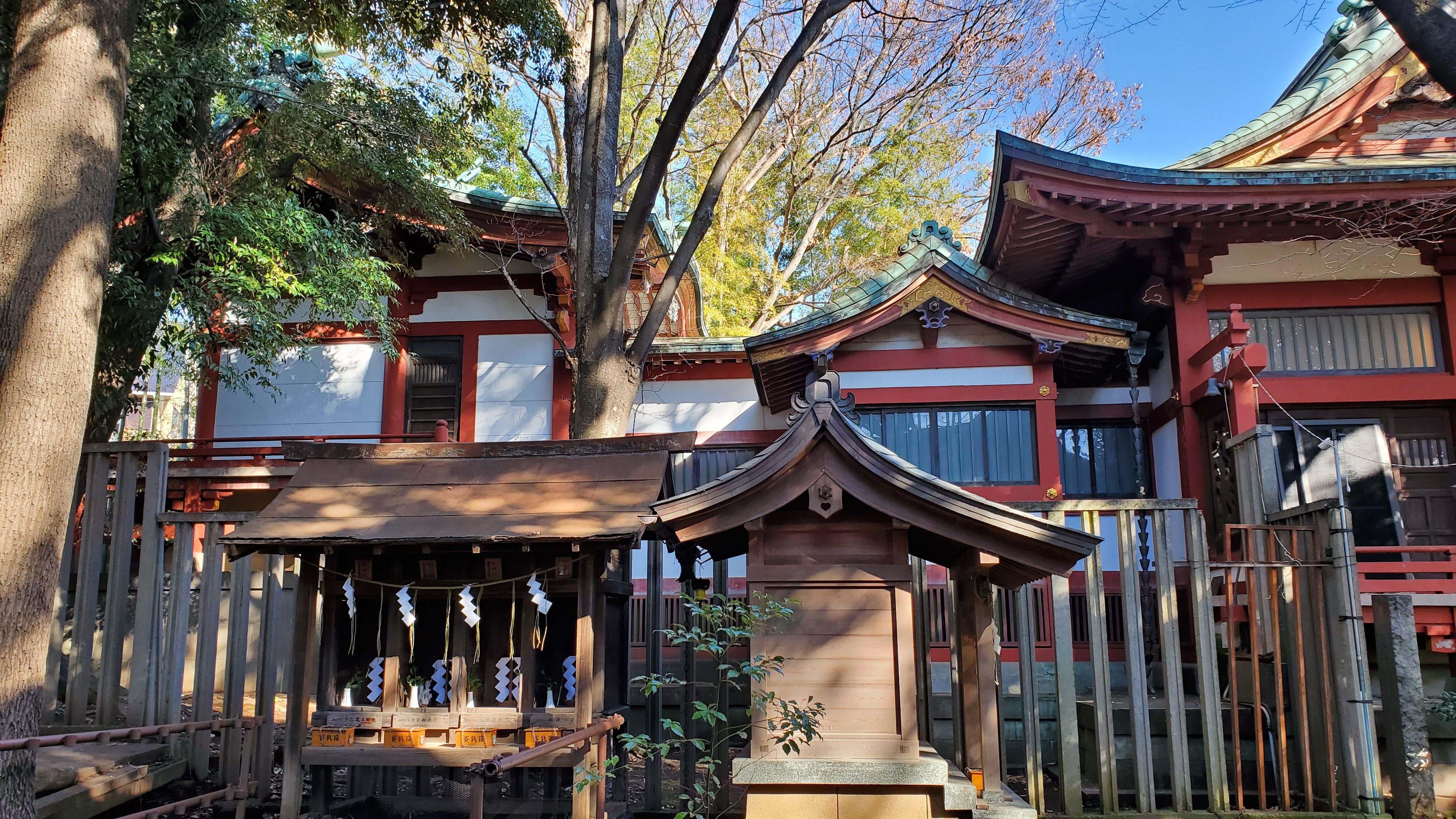 雪ヶ谷八幡神社にお詣りをすませると、社殿左側には境内社があると……
