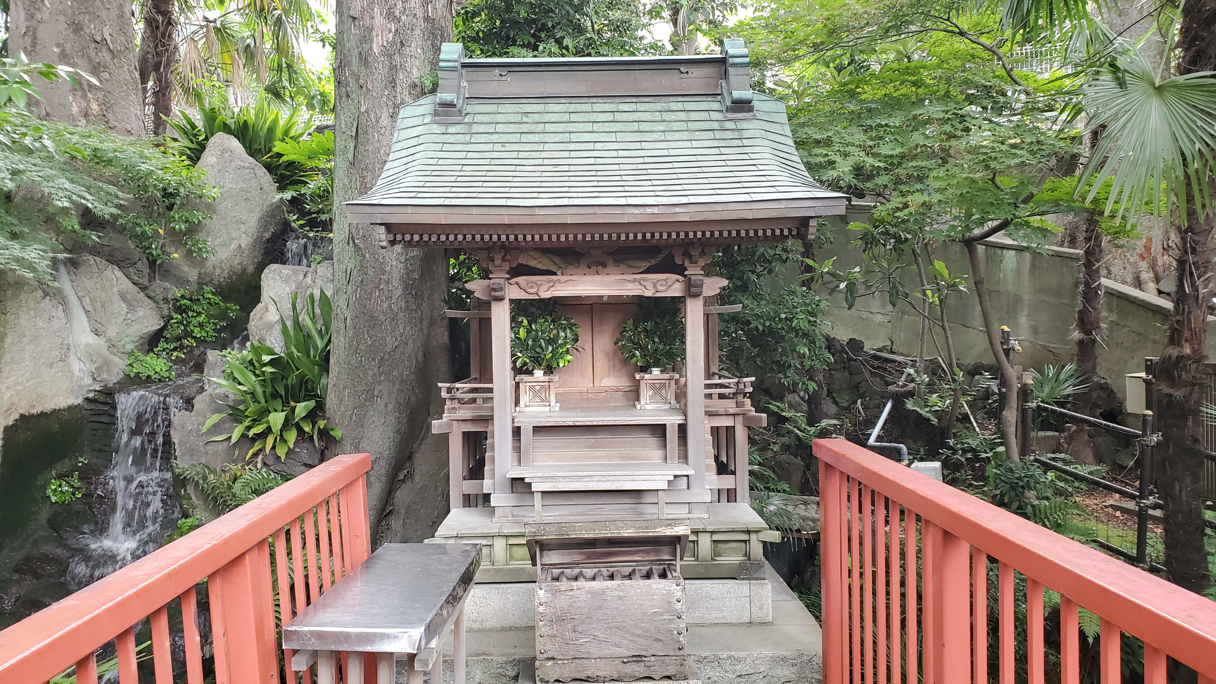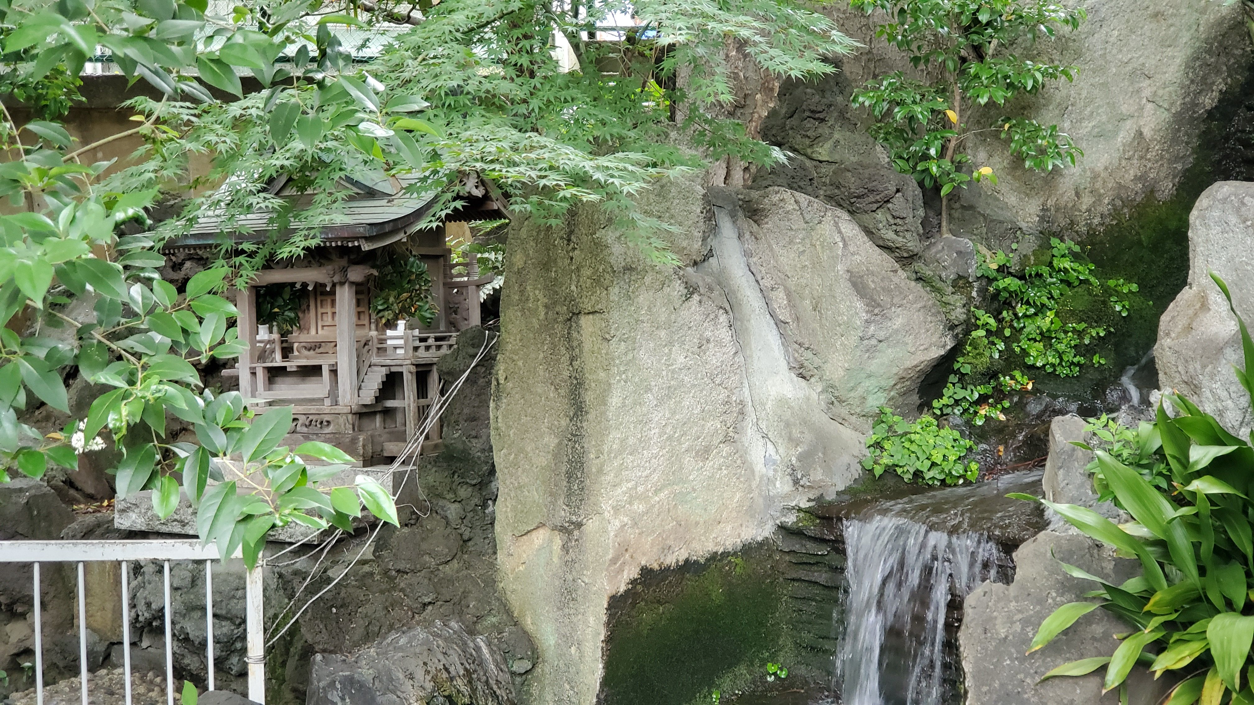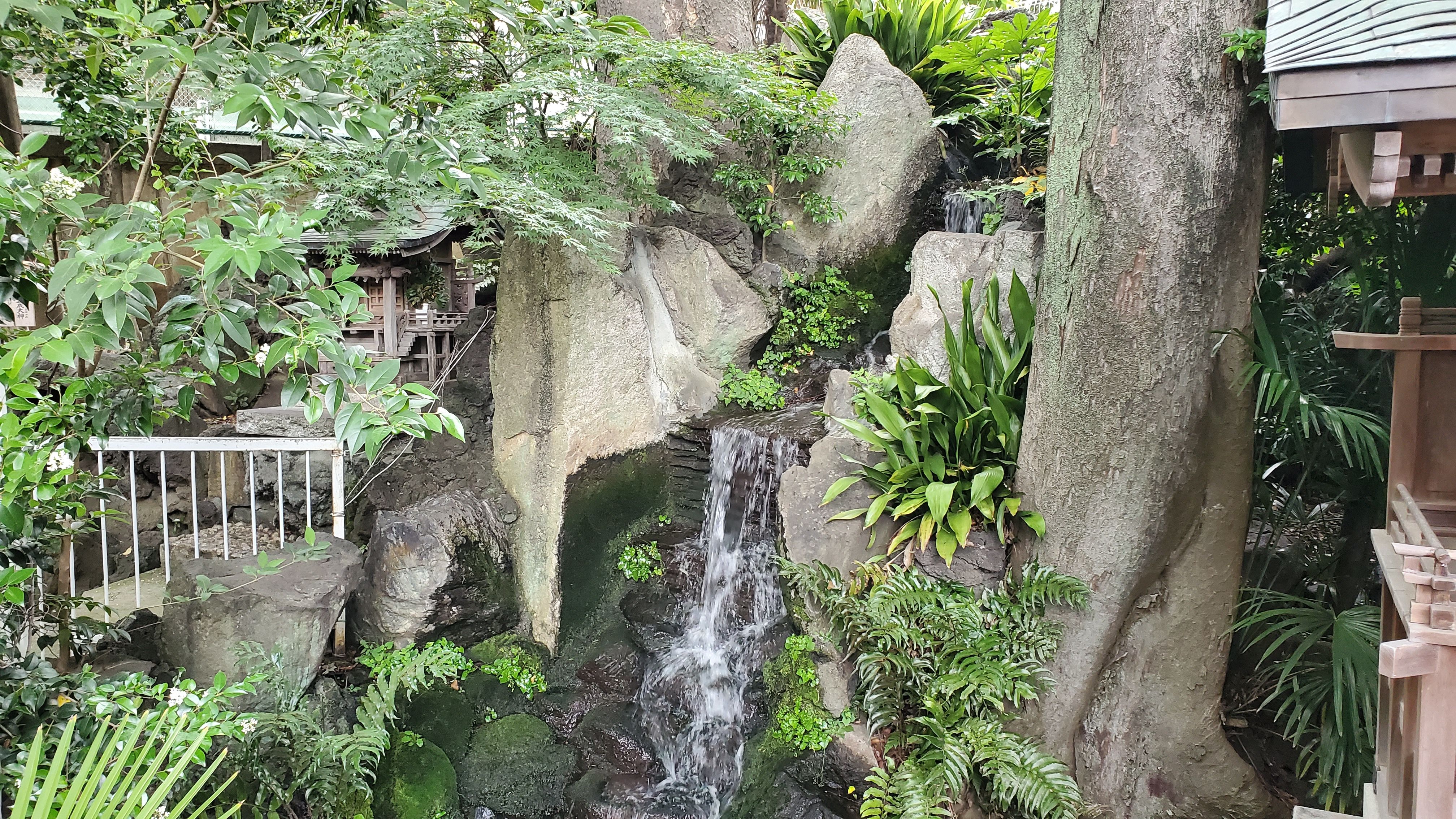 流れ落ちているのはポンプで循環させているはず。写真を撮ったら止まっちゃった……運が良かった。お賽銭入れたものね~