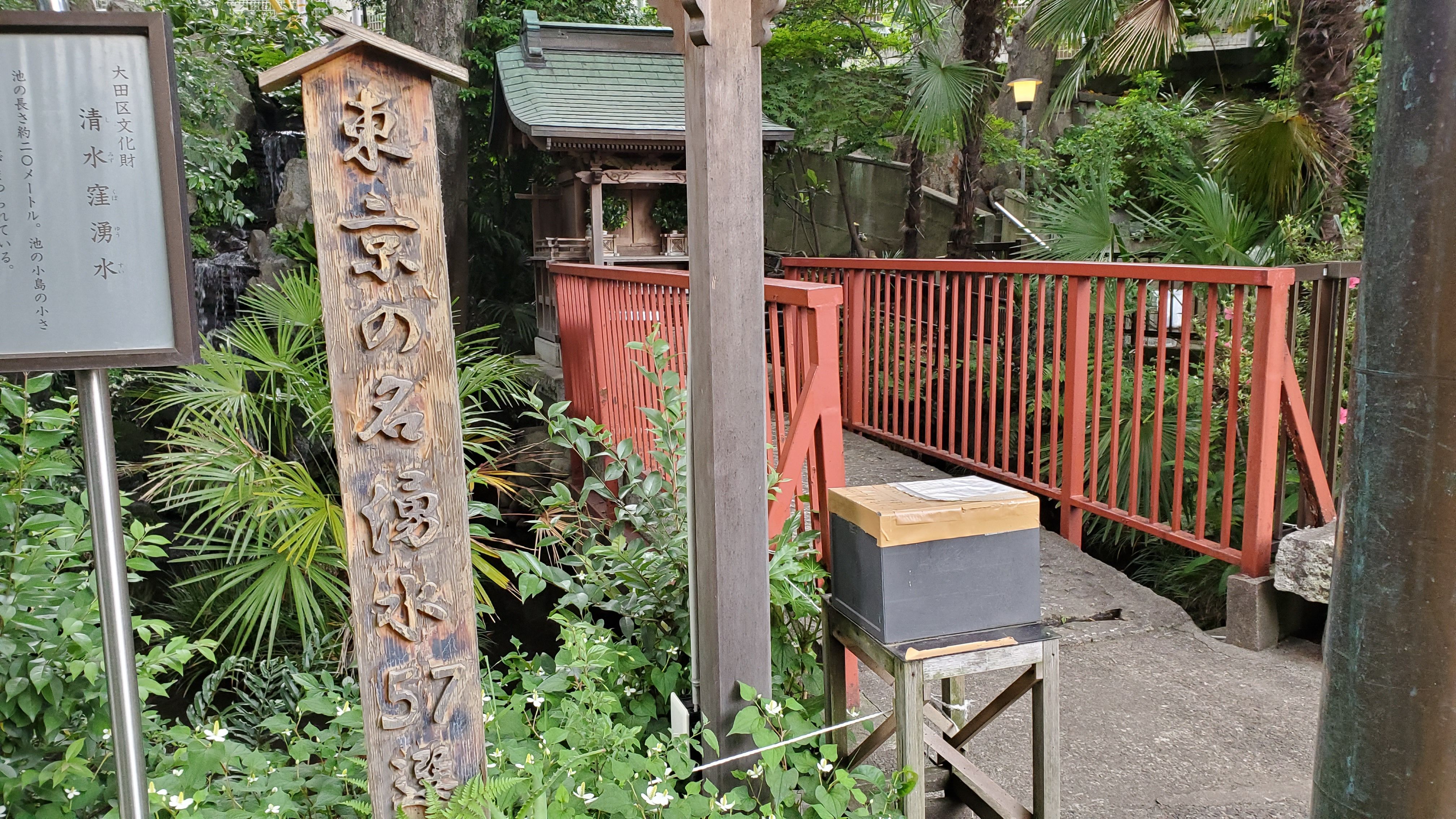 『ここから湧き出る水は洗足池の源流となり、かつて千束の谷が田畑であった頃、用水として水田を灌漑していた。』ってことは、南にある洗足池まで繋がっているの? 今も少しは湧いているみたいだけど、暗渠があるんかいな? 知らんかった~