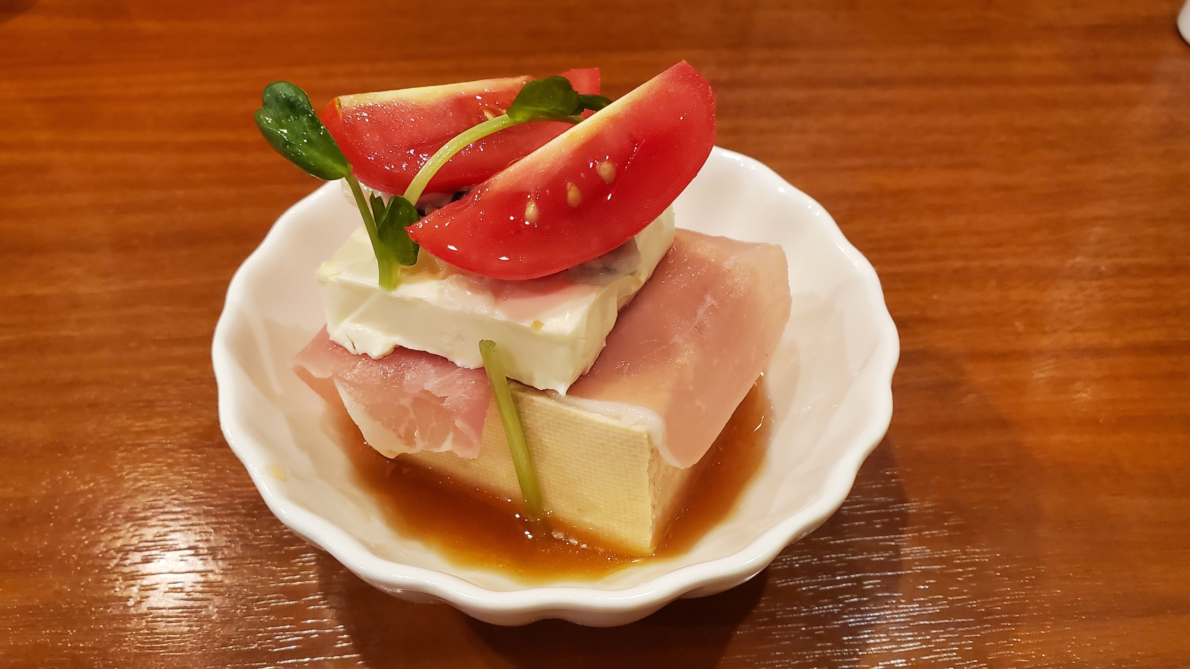 ながまるさんの、ある日のお通し。遊び心を忘れない主です。