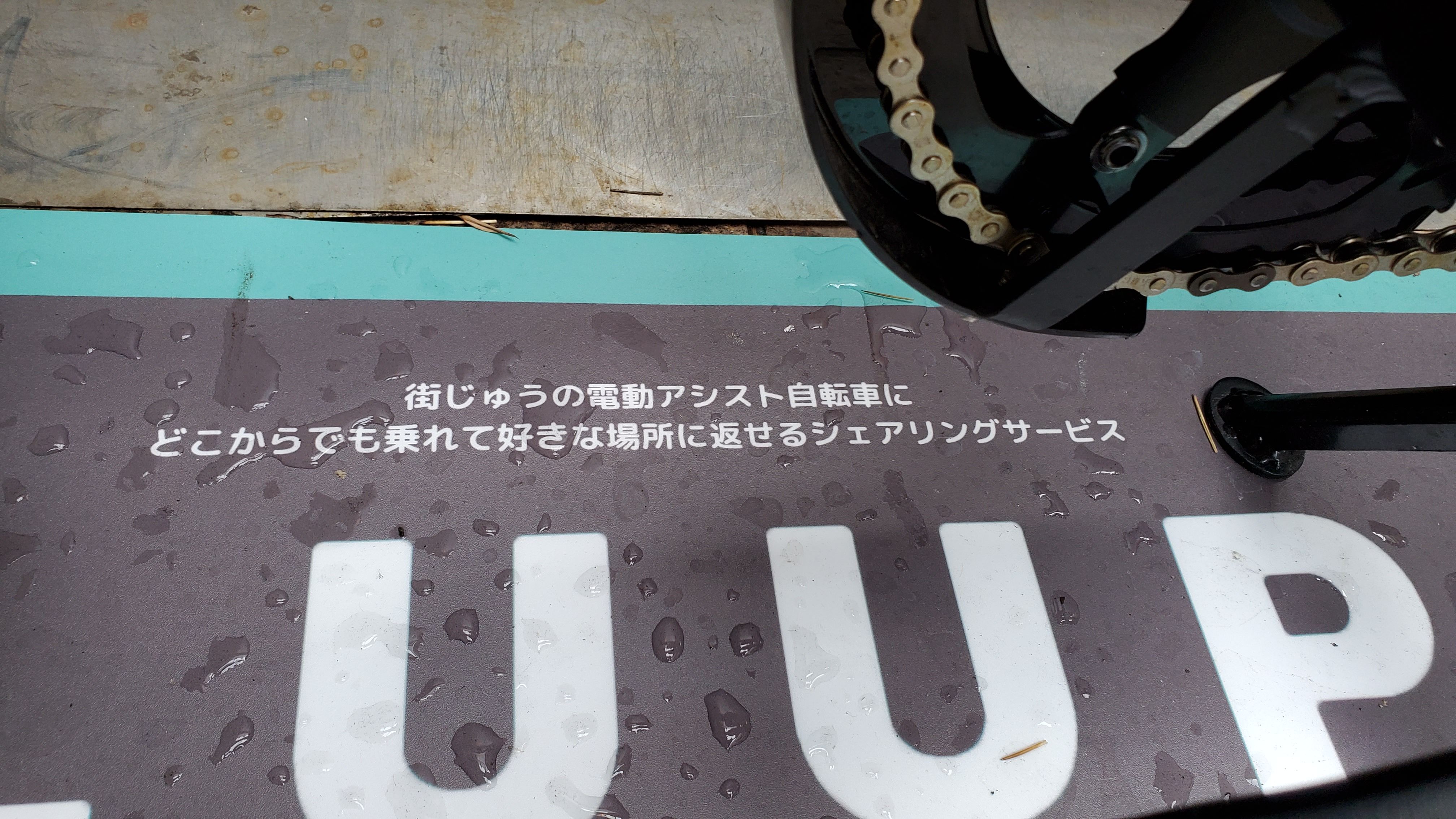 小さいけど電動アシストの馬力は結構なものだって。バッテリーは週一で交換に来るらしい。