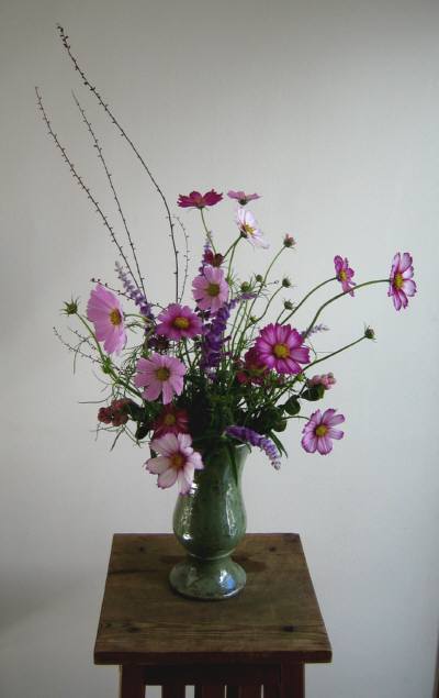 急に冷え込んできました。昨晩友人から「日光に紅葉狩りに行かない?」と誘われました。いつもだったら「行く行く!」と即答するとこですが、渋滞間違いないので平日行けたら、という事にしました。一度、関越から金精峠超えて奥日光へ、のルートで行ってみたいんですけどね。今日はやらなくてはいけない事をかなりのんびりペースでこなしています。すぐモノでいっぱいになってしまうキッチンの引き出し整理とか、アイロンがけとか、読みかけのマンガ読むとか。あまり使わないスパイスや紅茶、乾物類は、時々思い切って捨てないと賞味期限を1年も越えてるのがあったりするしね・・・私だけ?(笑)素麺なんかも夏終わると食べる気にならないので困りモノです。先週は鎌倉のお料理教室とお花のレッスンがありました。今月のお花はコスモスがメインの花びん活け。コスモスは本当に秋らしいお花で好きです。あまり長持ちしないと言われてるけどまだまだ元気に咲いてくれています。今週末、このお教室の生徒達の作品展があるのです。基本的にはみんな生のお花を使ったアレンジだと思いますが、私はちょっと忙しくて無理なので枯れないモスに決めて今日少し作ってみました。 プレゼントのBOXをイメージしたけど何か物足りない・・・で、他のものを少し足してみるとコテコテになるし。頭の中では何となくいい感じのイメージができてるのに実際それを作るのって難しいです。これで終わりにするかどうするか、ギリギリまで悩んでみるしかないですね。せっかく違う曜日の人達の作品も見られる機会なのに私は鎌倉に行けないのが残念。