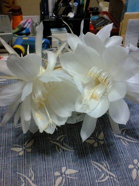 週末は台風の影響で・・・なんて天気予報はなんだったの?というくらい、東京はお天気で。お墓参りも心地よく行けた1日でした。ちょうど1年位前の今頃でしょうか、モンゴルへ行ったのは。その時に数日間ガイドとしてお世話してくれたOさんは、今年4月から就労しつつ奨学生として、日本に来る事を話していたので「じゃあもし東京に来るようだったら連絡してね」と名刺を渡していました。時々主人とモンゴルの話題になる時「そういえば彼はもう日本に来てるのかな~」などと言ってた事もありましたが、忘れた頃に連絡がきたのです。電話でやりとりをしたのは主人でしたが、「いつ会う?って聞いたら『早く会いたい』って。何か渡したいものでもあるのかな~」と言うので「逆に早く欲しいものでもあるんじゃないの?w」と冗談で返した私。だって、もう4月に日本に来てたというのにネ。いや、ほんと軽い冗談ですよ(笑)で、モンゴル人の彼女と家に遊びに来たのです。色んな話をしつつ、私が色々お料理を作りもてなしました。食事も終わり、私は片付けをして、主人達はコーヒーを飲んでると何やら話がおかしな方向に向かってる様子・・・あんまり私は近寄りたくなかったので必死に片付けを続けてましたが(苦笑)それも終わってしまい、渋々と皆のいるテーブルへ。要は借金の申し込みです。モンゴルで事業をしてるお父さんの会社が倒産して、1週間位までに借金を返済しないと刑務所に入れられてしまうので、100万円貸して欲しいという事でした。彼女と自分で毎月10万円づつ返済するからと言うけども、まあそれは不可能ではない事でしょうが4月に来日してから音沙汰もなしに、いきなり会って借金の話もないでしょう。その場では言えませんでしたが何かうそ臭い。てゆーか、私って勘が冴えてたのね・・・主人も1人では断わりづらかったのか、私に「で、どう思う?」と聞いてきたので「担保もなくお金を貸してくださいと言える相手はね、親とか親戚とか、何年来の親友くらいだよ」と言いました。まあ別に貸すつもりは毛頭ないので損もしないしいいんだけど、楽しかった旅行の後味が悪くなっちゃう。ちなみにモンゴルの平均月収はおそらく1万か2万円程度だったと思います。やなカンジ。彼らが帰ってすぐ、近所の知り合いから「月下美人が咲いたので見に来ませんか?」と誘われて遅い時間なんだけど遊びに行きました。 初めて生で見る月下美人の大きさと綺麗さに感動♪イヤな出来事も帳消しとなり、月下美人がクターっとしおれてしまう時間まで飲み明かしました。遅くまでスミマセン。