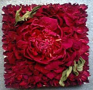 暑い暑い。9月に入ってもまだ暑いです。太陽の下に出るとすぐ日焼けしてしまう私にはまだまだ危険な季節(笑)昨日の午後は網戸を3枚張り替えました。プロがやるよりちょっと「たわみ」が多くなってしまいましたがw;それでも見た目はほとんどわからないし、満足できる仕上がりです。面倒だけど、自分で作る楽しみもあるしね。でもいつも途中で「やめときゃよかった」とは思ってしまいます。そんな、満足と後悔を味わった夜に、友人からプレゼント製作を頼まれました。幼稚園に通う子供のお母さん仲間が海外赴任で引越しされてしまうみたいで、皆でお別れのプレゼントをするのにすぐ枯れてしまう生花よりドライフラワーがいいと。それで、ちょうど私が習ってるから作ってくれない?といういきさつです。お花に関しては前から聞いていたので、ちょっと前にしゃくやくを使用したお花を作っておきました。ちょっと大人っぽいデザインですが、このテの色はあまり退色しないので長持ちするから、プレゼントには最適なお花だと思います。お花はいいとして、それを入れる箱についてもまた昨日色々と話し合っていたのですが。なるべく壊れないように、箱の大きさも考えなくてはならないし、また友人も運動会が近づいてるらしくて忙しく、なかなか箱を選びに行く時間もないとか。それならいっそ作ってしまえ、と言う事になり(笑)久しぶりに布の箱を手作りしました。 厚紙を切って箱に仕立てて、それから布を貼っていきます。クッションを作った余りの、ローラアシュレイの布を使用。ちょっと厚手の生地なので細かい部分が貼りづらいです・・・網戸と同じく「やめときゃよかった」と思いつつ(苦笑)0時くらいから作り初めて、仕上がったのが朝3時半くらい。その後、箱にお花を入れてみて、雰囲気をチェック。 これをもらう人は、こんな感じが好きな人かどうか?あげる人の事が全然わからなくて作るのってものすごい不安感じるものなんだなぁ。色々考えてるうちに朝になってしまったのでした。