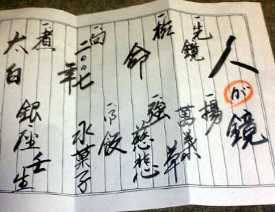 頑張った自分にご褒美を、というわけでもないのですが前からずっと行ってみたかった「銀座 壬生」に行ってきました。昼と夜に8人限定で会員制のような形を取ってるらしいので紹介がないとまず席にはありつけないかもしれません。私は鎌倉のシェフの席を譲っていただきました。こじんまりとしたお店の中に揃った人達はほとんどが70・80代か?と思われるおばあさん達。皆さまに向かって「宜しくお願い致します。」とご挨拶。こんなに緊張するお客になるのは初めてですよ(苦笑)でもとても優しい方たちでした。「人が鏡」というお題。自分も他人も同じように、最後は老いて死んで行くものだから毎日一生懸命に生きる事とか、そんな意味合いをこめたらしいです。写真を写す事ができないのであとで思い出しながらスケッチしようと思っています。味はとにかく素材を生かしてシンプル。調味料も最小限に抑えてる感じです。それが本当に美味しいの。そしてタイトルのつけ方からもわかるように盛り付けの趣向が素敵。決して豪華で派手なものではないけどとても手の込んだ、仕込みの大変そうなものばかりでした。金ん子(干しなまこ)、このわた、天然ふぐの白子などなど滅多に食べる事のない味を堪能してお腹いっぱいで幸せ~♪ただし、この幸せは2万5千円。私なんかがそうそう行けるとこではありませんふぅ・・・