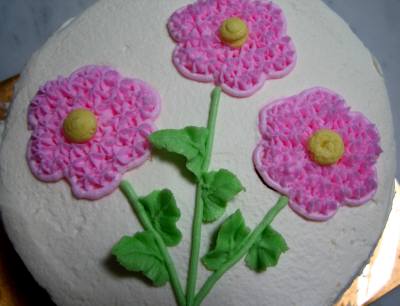 もうすっかり春だね~なんて言って油断してると、思ったより寒かったりします。先週からケーキのデコレーション教室に通っています。まだまだ最初は単純なデコレーションしか習いませんが、3ヵ月後にはどのくらい上達してるのでしょうか。初日は話とデモを見て試食だけで終わり、2回目はこんな感じのデコレーションをしました。 単純なデコレーションですが、これも案外難しかったり(苦笑)上達するには家で練習あるのみ・・・そして土曜日はドライフラワーのレッスンに行きました。4月の作品展に向けて製作中です。30×30サイズを2枚作るのですが、まだまだ先は長い。これからヒマを見つけては花びらをせっせと貼り続けないと。でも遊びに行く事を我慢するのも無理な性格なので相変わらず時間が足りません。時間を上手く使いこなせる人になりたいなぁ~。