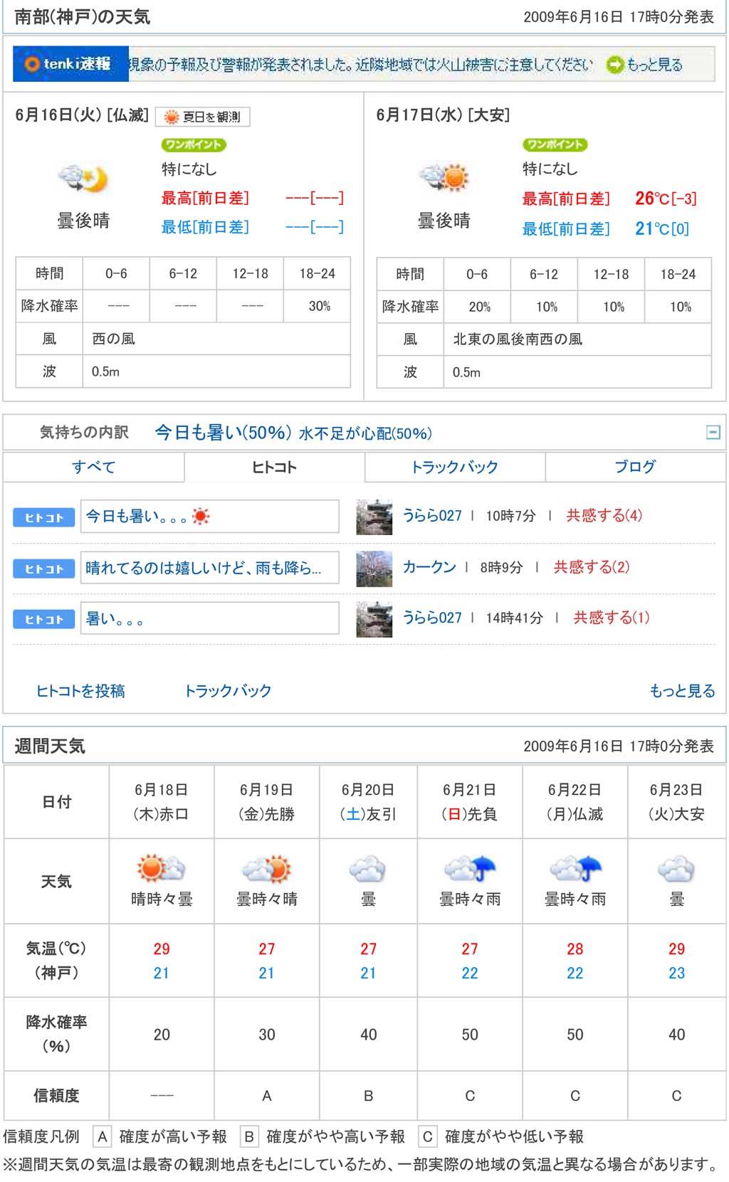 関西は梅雨入りしたが、雨が降らない・・・これって、カラ梅雨だろうか???これから1週間の予報では、日曜日から月曜日(6月21日~22日)にかけてやっと雨が降る予報。それ以外は、晴れマーク・・・【画像をクリックすれば、別画面で開きます】梅雨といえば、しとしとと雨が降って、終わりごろにはガラガラ・ドッスンと雷がなって、梅雨明けというパターンでしたが。最近は、カラ梅雨に、集中豪雨。極端な降り方が多くなっています。梅雨明けも、だらだらと、「何時空けたの?」って感じです。地球温暖化の影響もあるでしょうが、気候が大きく変わっているようですネ。