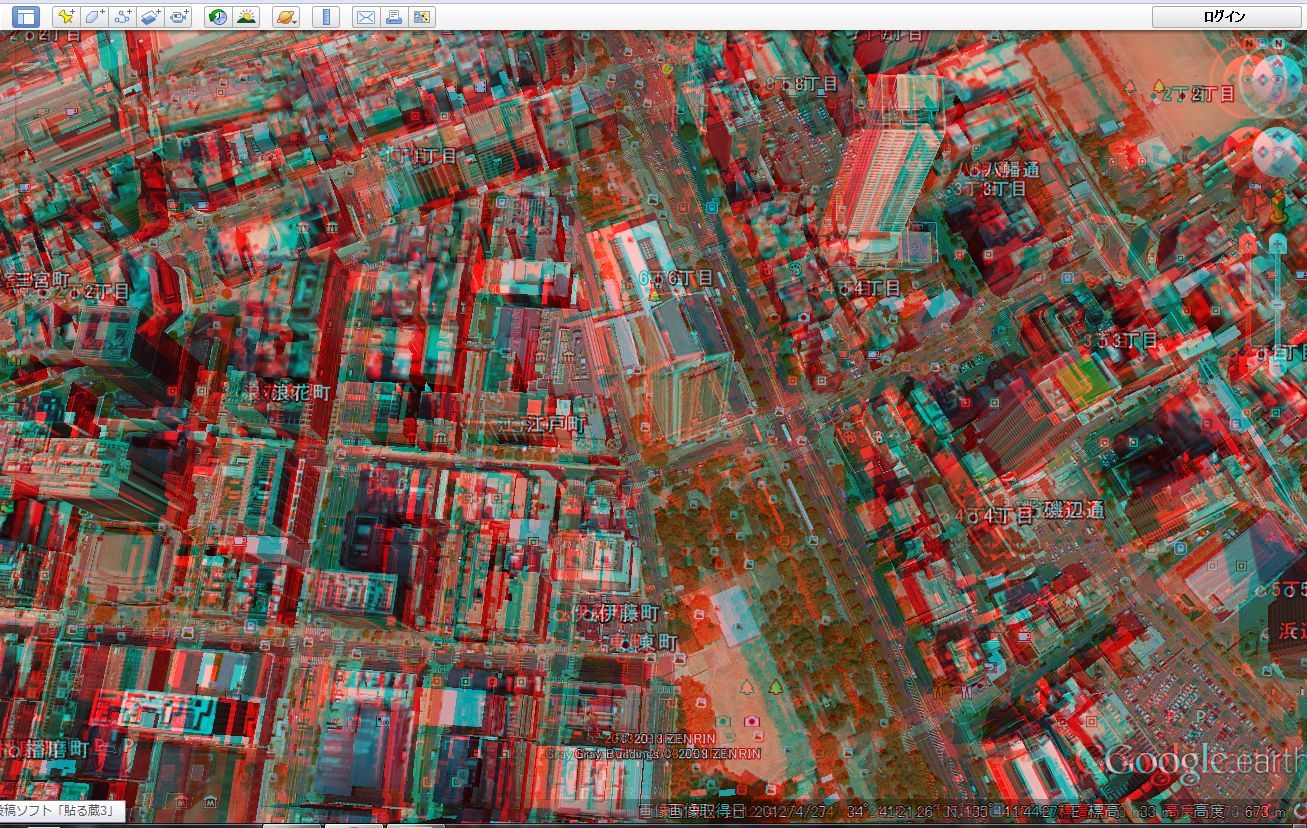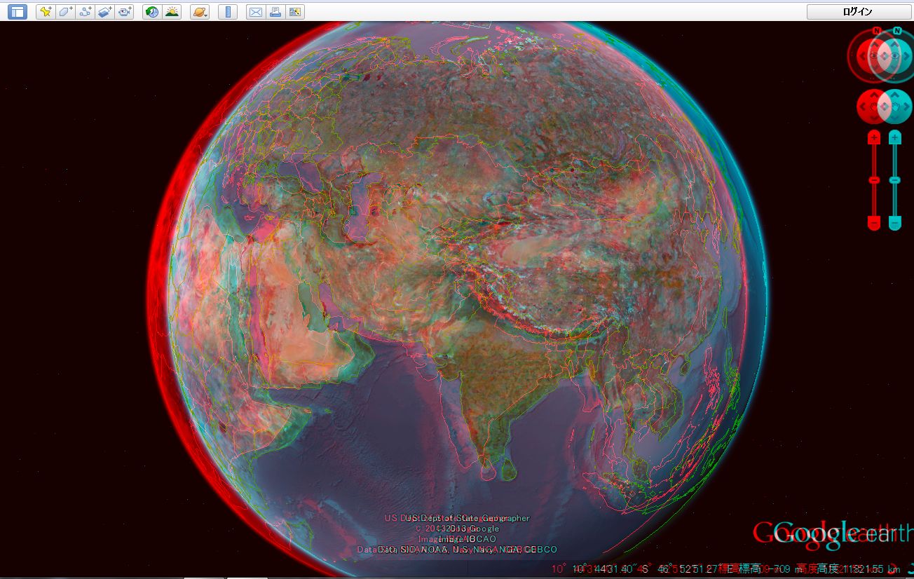 Windows7のパソコンで、グラフィックドライバーをアップデートしてから、GoogleEarthを起動した際に、表示画面が赤色と青色の二重にずれて表示されるようになった。
