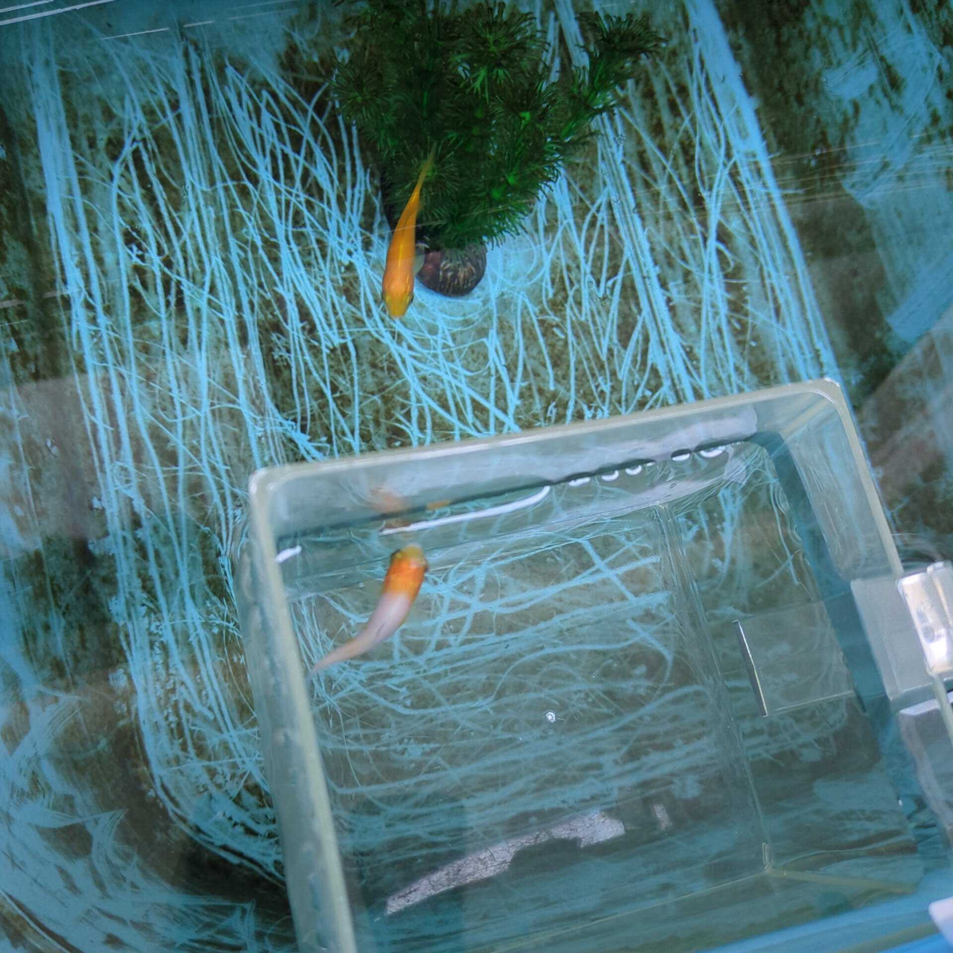 カゴなどで隔離するか他の長物金魚たちと合流させて