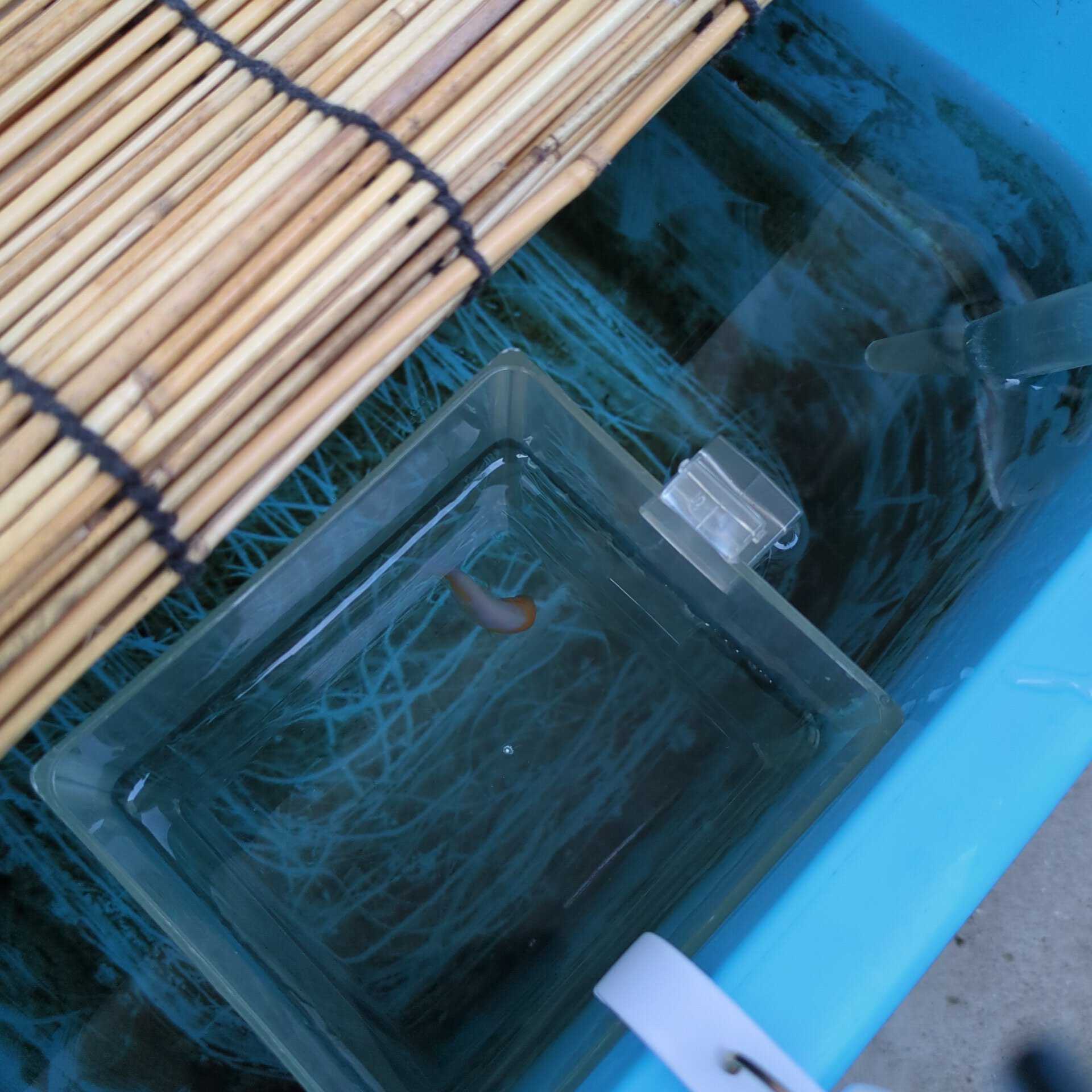 捕獲容器(キッチンポット)を留めて浮かべておきました。