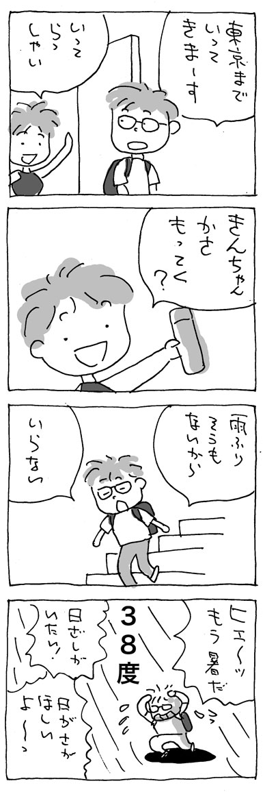 きんまるが仕事をする、マンガ部屋のクーラーがおかしい。冷房のスイッチを入れても、冷房にならないのだ。そのかわりに、汗臭いお相撲さんのような匂いが部屋中に漂う。この、猛暑に、困ったことになったのだった。でも、クーラーが壊れたのは、さておき、カラダが壊れないで良かったなあ。よかった!よかった!あ、また、お相撲さん臭い。がくっ。♪チャンチャン♪_________それから、宣伝です。企画のたまご屋さんの仲間百世さんがトークショーを開きます。ご興味のある方は、おでかけください。_________『社会起業家スタートブック』出版記念トークショー&サイン会日時:8月22日(日)15:00~16:30ゲスト:百世瑛衣乎さんワークショップ形式でのトーク会。・ソーシャルビジネスの特性とは?・事業化ポイントの見つけ方・第2の顧客の成功事例・ソーシャル・インパクトの可視化会場:大盛堂書店 3Fイベントスペース参加無料・先着50名様「社会起業家スタートブック」百世瑛衣乎著 亜紀書房 1500円社会起業分野で、ノウハウ+実例の初の本。