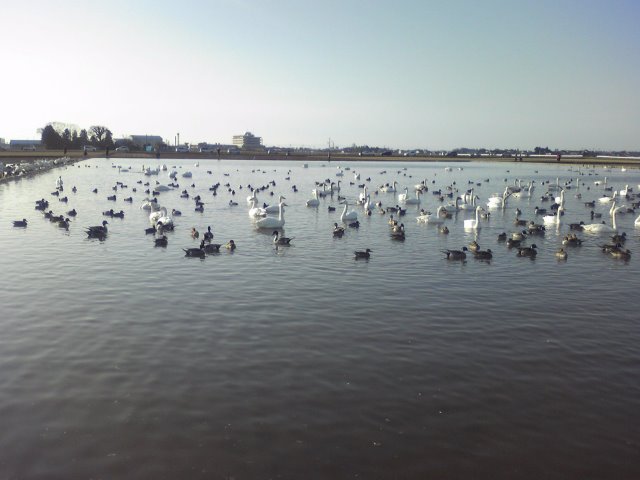 のびのびの帰り野中の白鳥をみに行きました白鳥よりも小さな鴨の方がたくさんいましたちょうど餌がもらえる時間のようでしたカメラを持った人が待ち構えていました来月になれば第一班の白鳥の群れが遠いシベリヤに帰っていくのだろう来年も元気で富山のこの地に帰ってきて欲しいものです携帯カメラで撮ってみましたがあまり上手くいきませんでした今日のリハビリは残念なことにスタッフの人との会話が長すぎて時間が取れなくなりあまり出来ませんでしたそんな日もあります