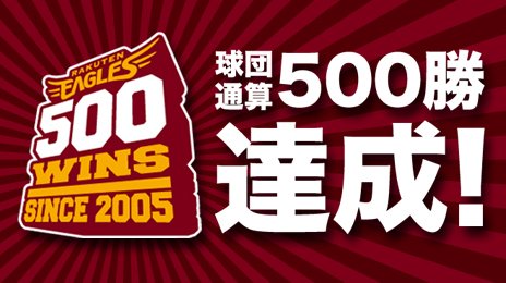 楽天、西武に勝ちましたこれで500勝だそうです今年の目標はまずクライマックス進出そして恐れ多くも優勝なのです今日の勝ちに喜んではいられませんまだまだです今年はロッテが強そうですロッテに勝って苦手意識をなくそう500勝バンザイ!これからもがんばつて!