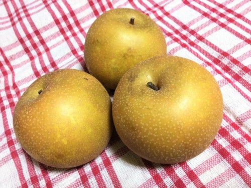 ご近所さんから幸水梨のおすそわけ♪8月23日 もくようび残暑おとろえ知らず今日のリハビリベッドでからだをゆるめてもらいましたすこし休んでいたらしいいつのまにかおわったかんじですいうことなしシャキシャキのみなさんHくん ありがとう来週もよろしくたのみます