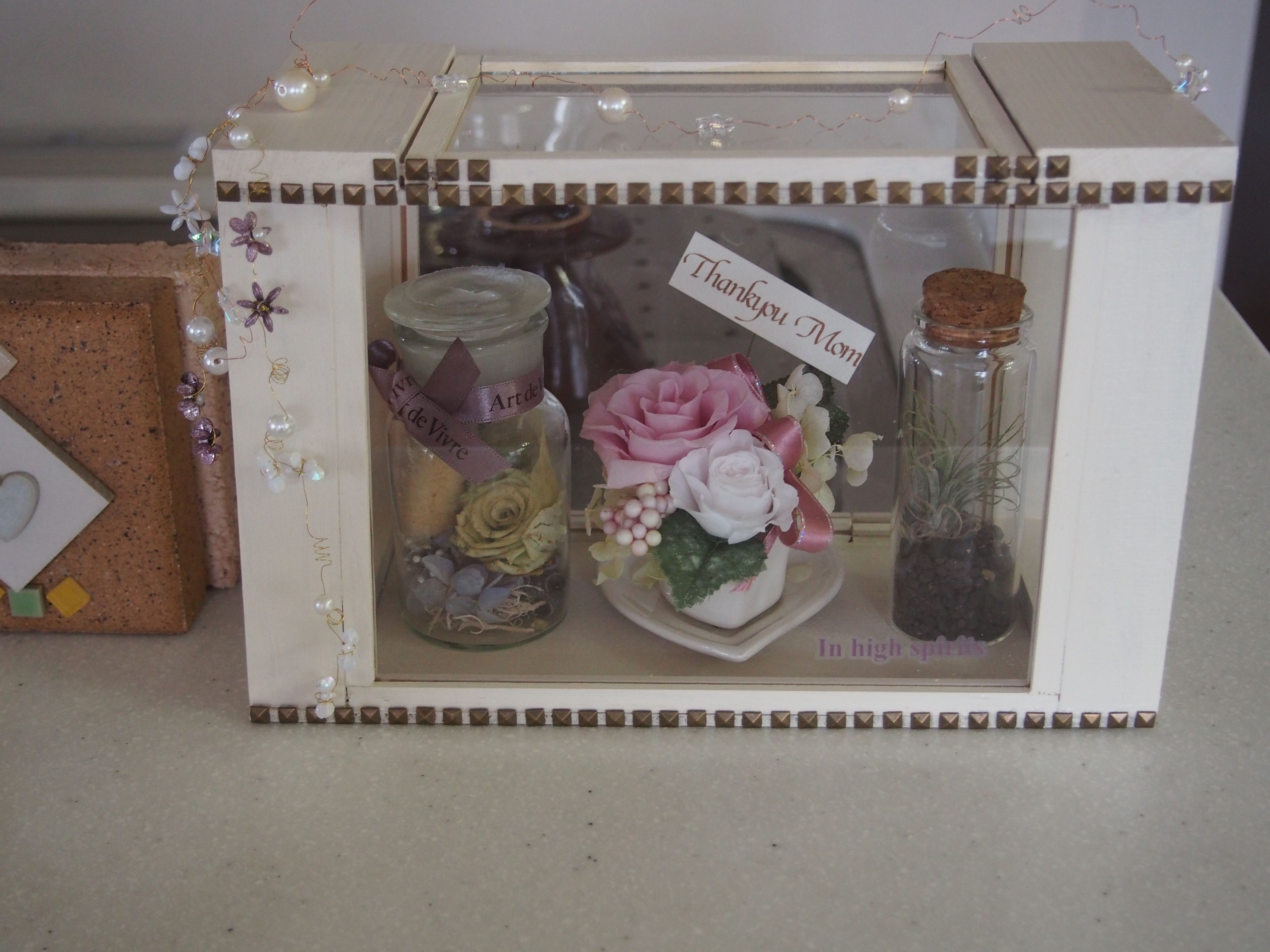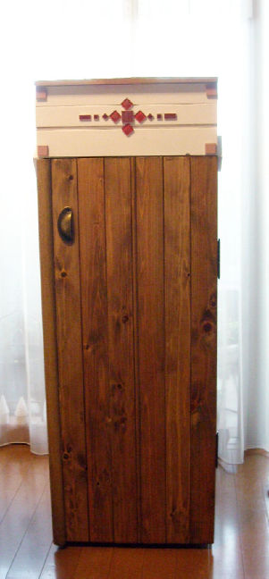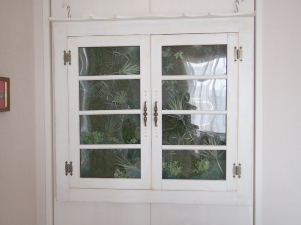 広い空間を何とかしたいと思い、出窓を作って外の気分を、、、、、台所用に作りました。写真の撮り方が悪くて、立体感が出てないですね(^^ゞアンティーク風に、蝶番も取っ手も、そして、少し汚したり、傷を付けたり、、、、、しています。楽しかったです(^^)