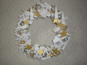 今年も、コンテストに出品するため、製作しました。作ってみないと気づかない苦労がたくさんありました。洗練された白の素敵なリースの完成です!