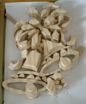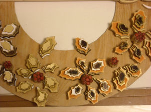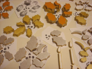 クリスマスリースに取り掛かっています。今回は、完成のイメージが無いままの製作です。いつもなら、ベースを先に考えて、、、、なのですが、、今回は先に、オーナメントありき!からのスタートです。どんなものができるのでしょう~私も分かりません。プライドにかけても、、、(そんなプライドあったかな?)完成品はいいものでありたいです。1.まずは、オーナメントを糸鋸でカット。 シャドーボックスをイメージして、大、中、小のデザインをプリントアウトし、カット。 何処にどの部品が~ 分からなくなるので、とっても細かい。それぞれ3ピースずつ。 私には向いてないのですが、乗りかけた船です。。 カットしたら、ヤスリで整形。